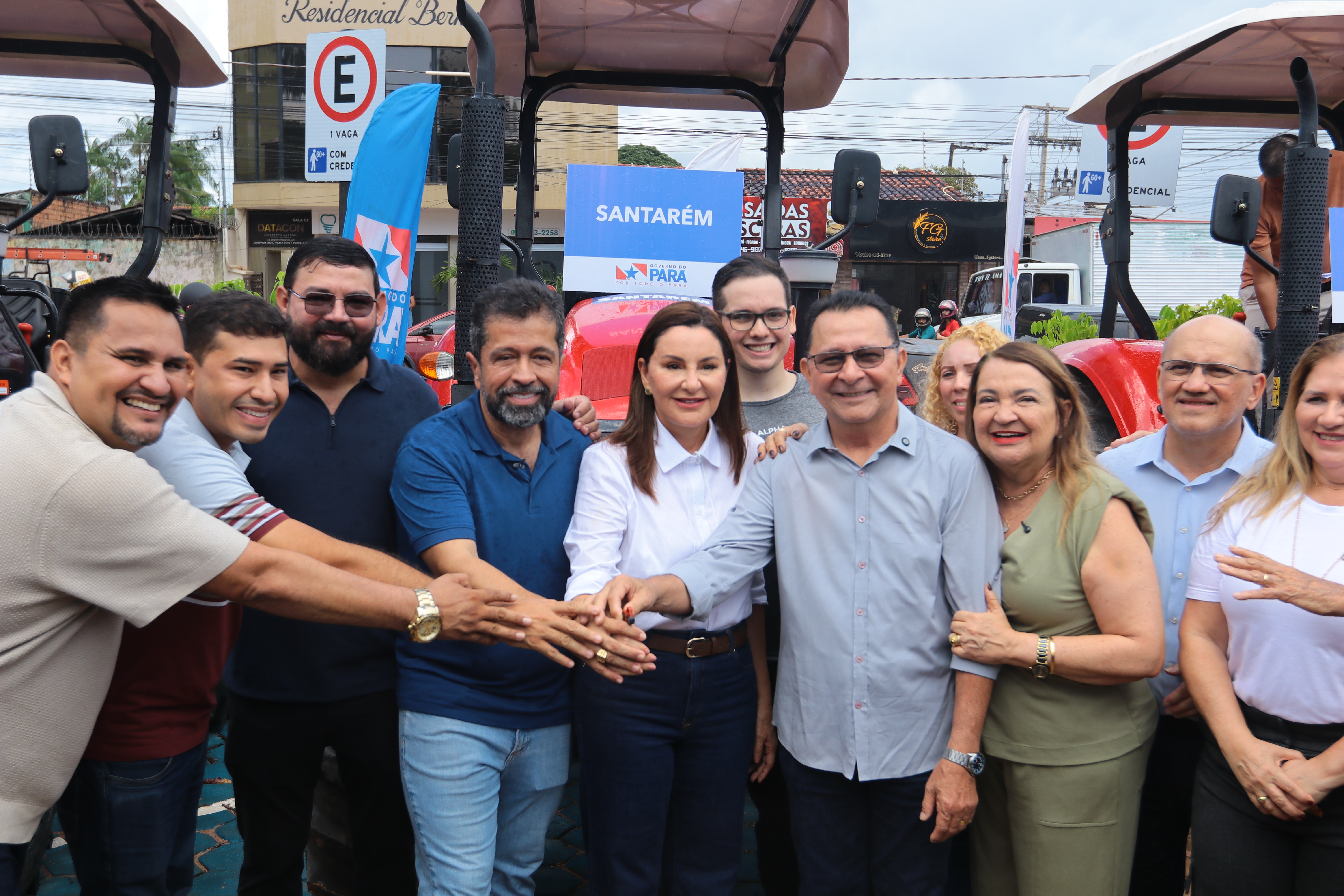 Durante cerimônia realizada na manhã desta terça-feira, 7, no estacionamento do Parque da Cidade, o prefeito de Santarém, José Maria Tapajós, recebeu da governadora do Pará, Hana Ghassan, um trator agrícola. O equipamento vai fortalecer as ações da agricultura familiar e impulsionar o desenvolvimento rural na região.