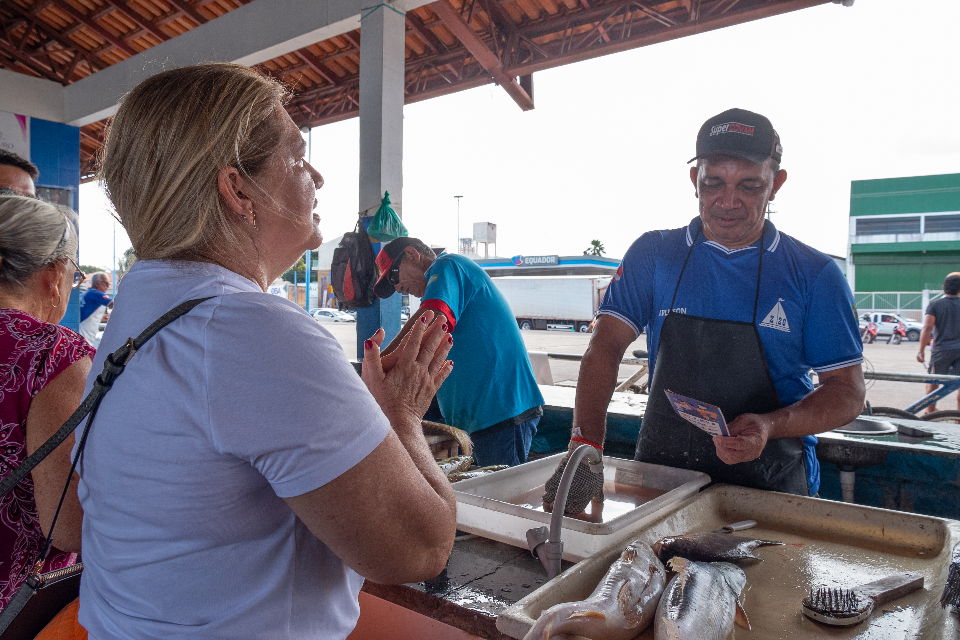 A concentração ocorreu no Instituto Chico Mendes de Conservação da Biodiversidade (ICMBio) e seguiu até a Feira do Mercado do Peixe, com panfletagem, diálogos e fixação de cartazes em estabelecimentos autorizados. Homens de diferentes idades, motoqueiros, voluntários e representantes de instituições estiveram à frente da mobilização, ocupando o espaço público como demonstração de compromisso e responsabilidade coletiva.