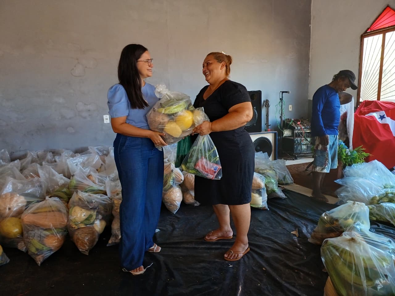 Os alimentos — como macaxeira, banana, melancia, jerimum, farinha de mandioca, melão, goma, couve, maxixe, repolho e polpas de frutas — foram adquiridos de 17 produtores rurais locais com recursos do PAA Federal, fortalecendo a agricultura familiar e garantindo o acesso das famílias a produtos frescos e saudáveis.