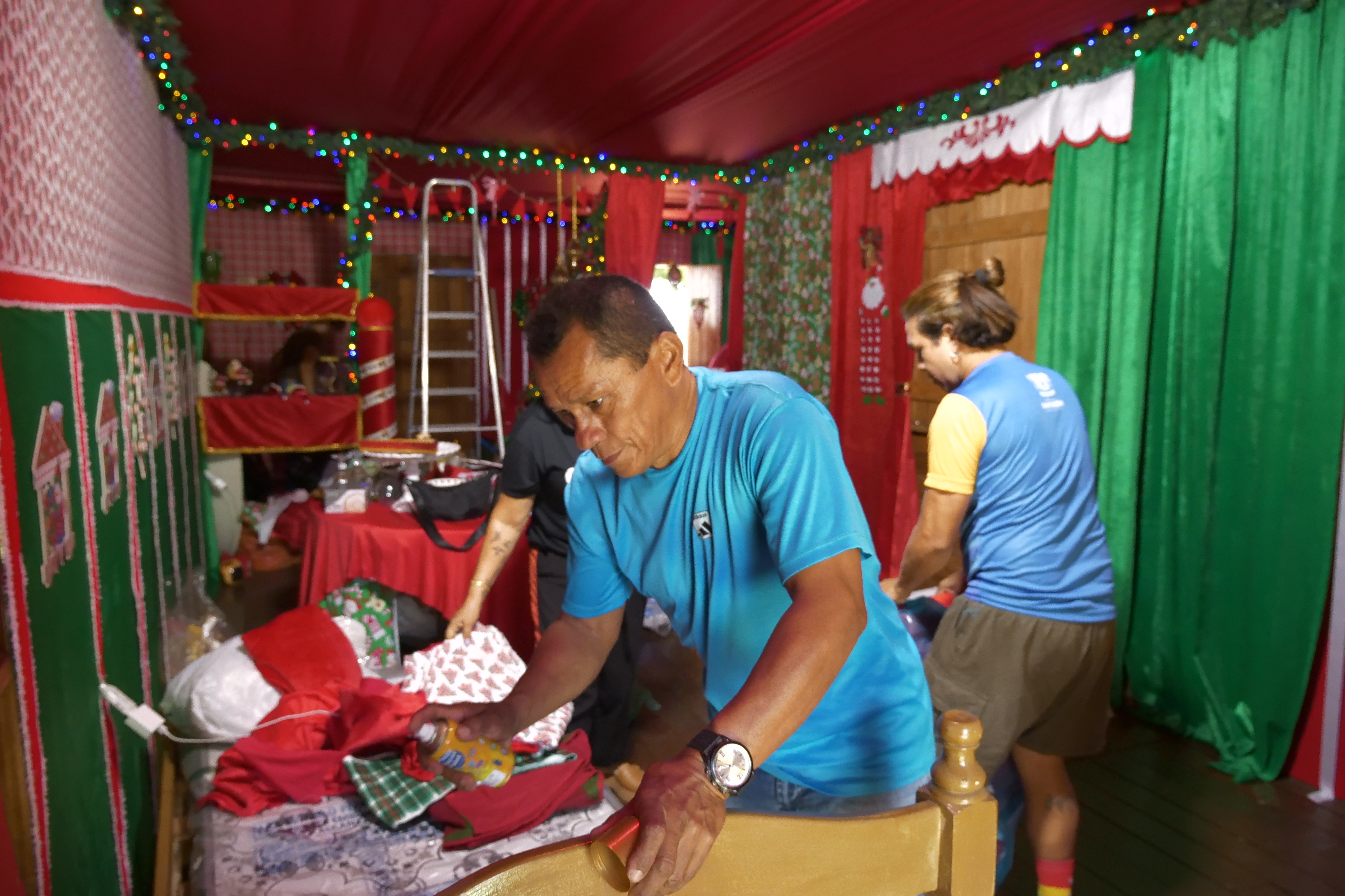 Os trabalhos começaram com o objetivo de transformar o espaço em um ambiente mágico, capaz de transmitir o encanto e a simbologia do período natalino. A ornamentação envolve a criação de cenários especiais no interior e no exterior da casinha, com luzes, guirlandas, cores vibrantes, elementos lúdicos e peças decorativas que remetem à fantasia e ao acolhimento típicos do Natal.
