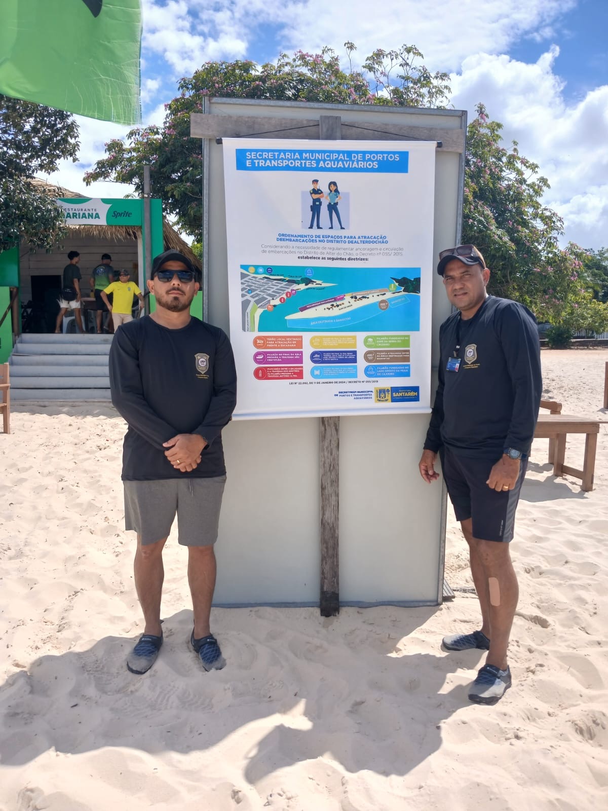 As peças foram fixadas no Centro de Atendimento ao Turista (CAT), na praia de Alter do Chão, na escadaria e na praia do Cajueiro. O objetivo é orientar condutores de embarcações, turistas e moradores sobre como está organizada a disposição das atracações na região, especialmente neste período de grande fluxo por conta do Carnaval.