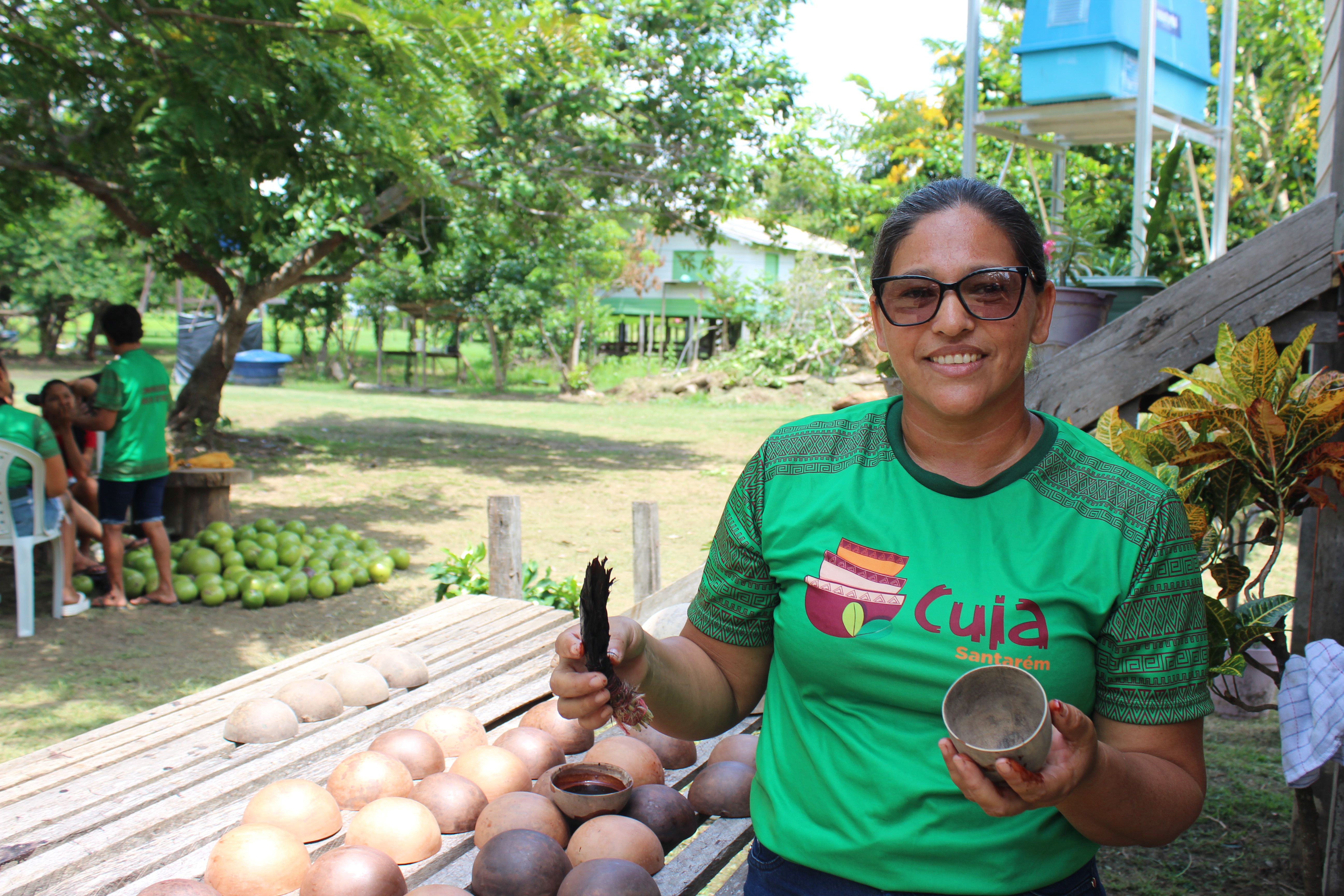 Geciene Azevedo Teixeira, moradora da Comunidade de Cabeça D’Onça e líder da iniciativa comunitária Cuia Santarém, dedica-se a fortalecer essa tradição, envolvendo sua família e outras artesãs.