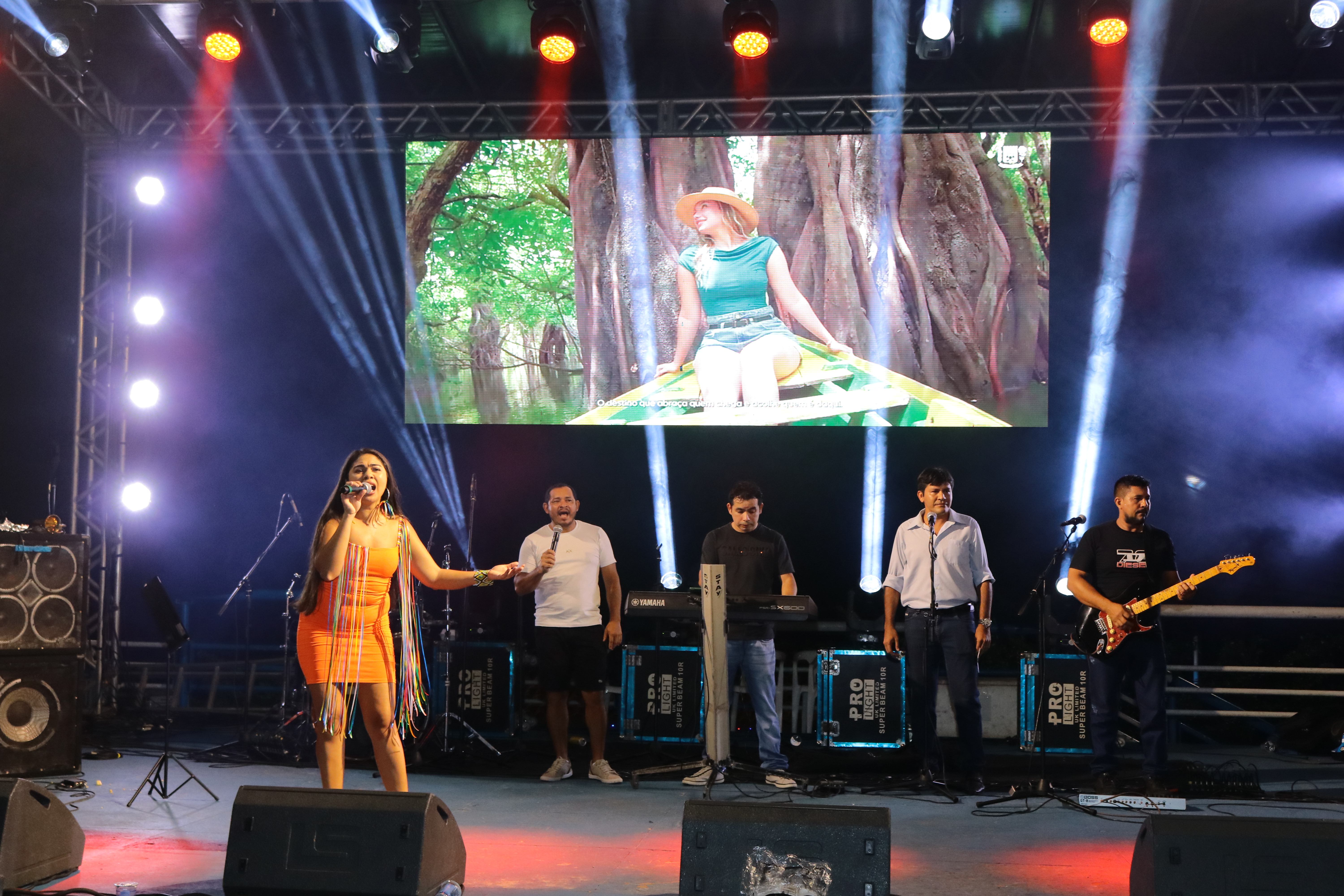 A programação seguiu com apresentações musicais que mantiveram a praça cheia e o público animado. Subiram ao palco Chorinho Amigos do Zé, Sons do Norte, Wanderley Andrade e Forró do Ricardão, reunindo diferentes estilos e mantendo o clima festivo até o fim da programação. Mesmo com a chuva que caiu durante parte da noite, o público permaneceu na praça, dançando e celebrando.