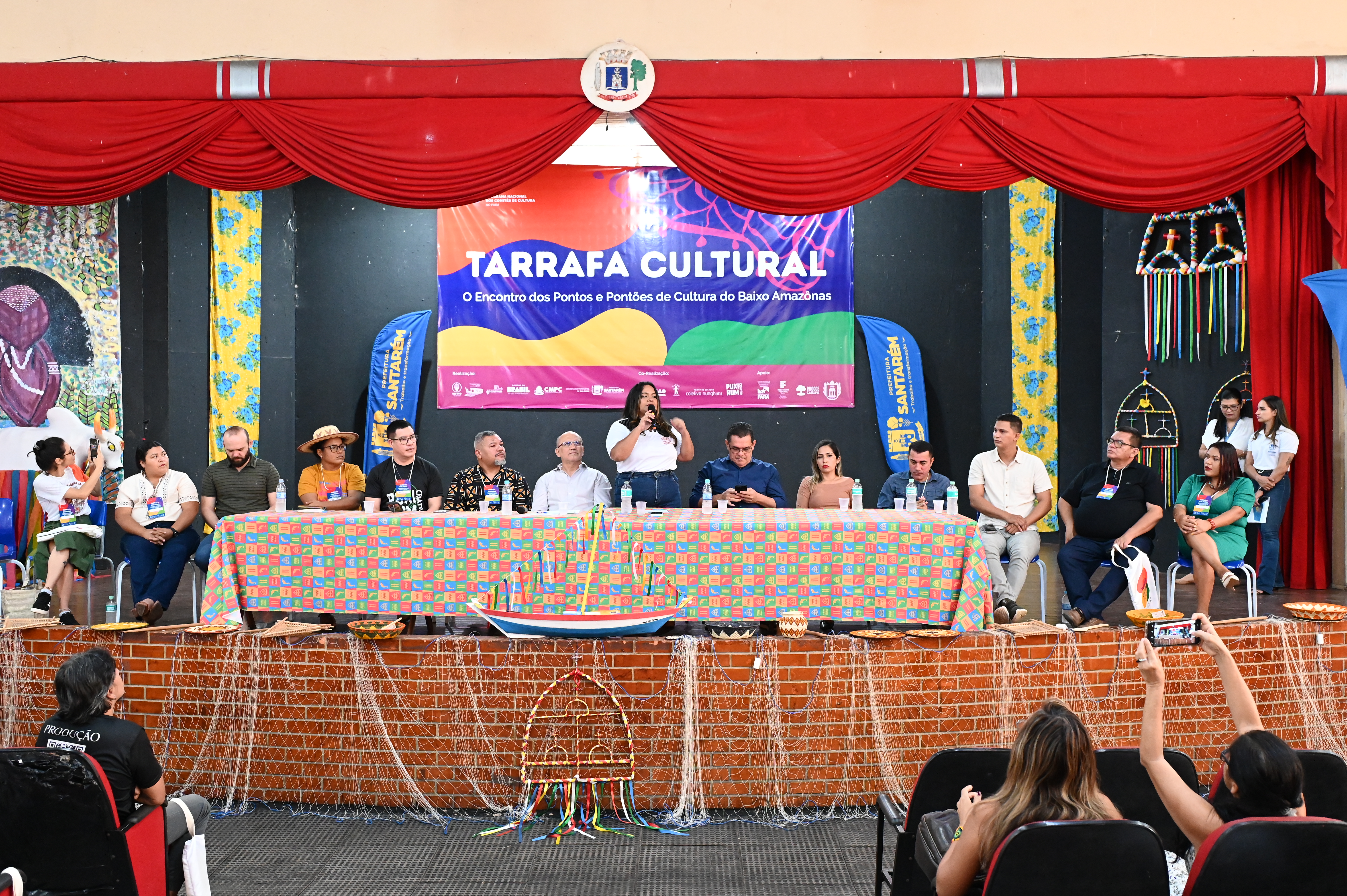 A Prefeitura de Santarém, por meio da Secretaria Municipal de Cultura (Semc), participou da abertura oficial do Tarrafa Cultural: Encontro de Pontos e Pontões do Baixo Amazonas, que ocorreu na manhã desta quarta-feira (29), na Casa da Cultura. O objetivo do encontro é fortalecer a articulação entre iniciativas culturais da região, promovendo formação, troca de experiências e construção coletiva de propostas para o fortalecimento da política Cultura Viva no oeste do Pará.