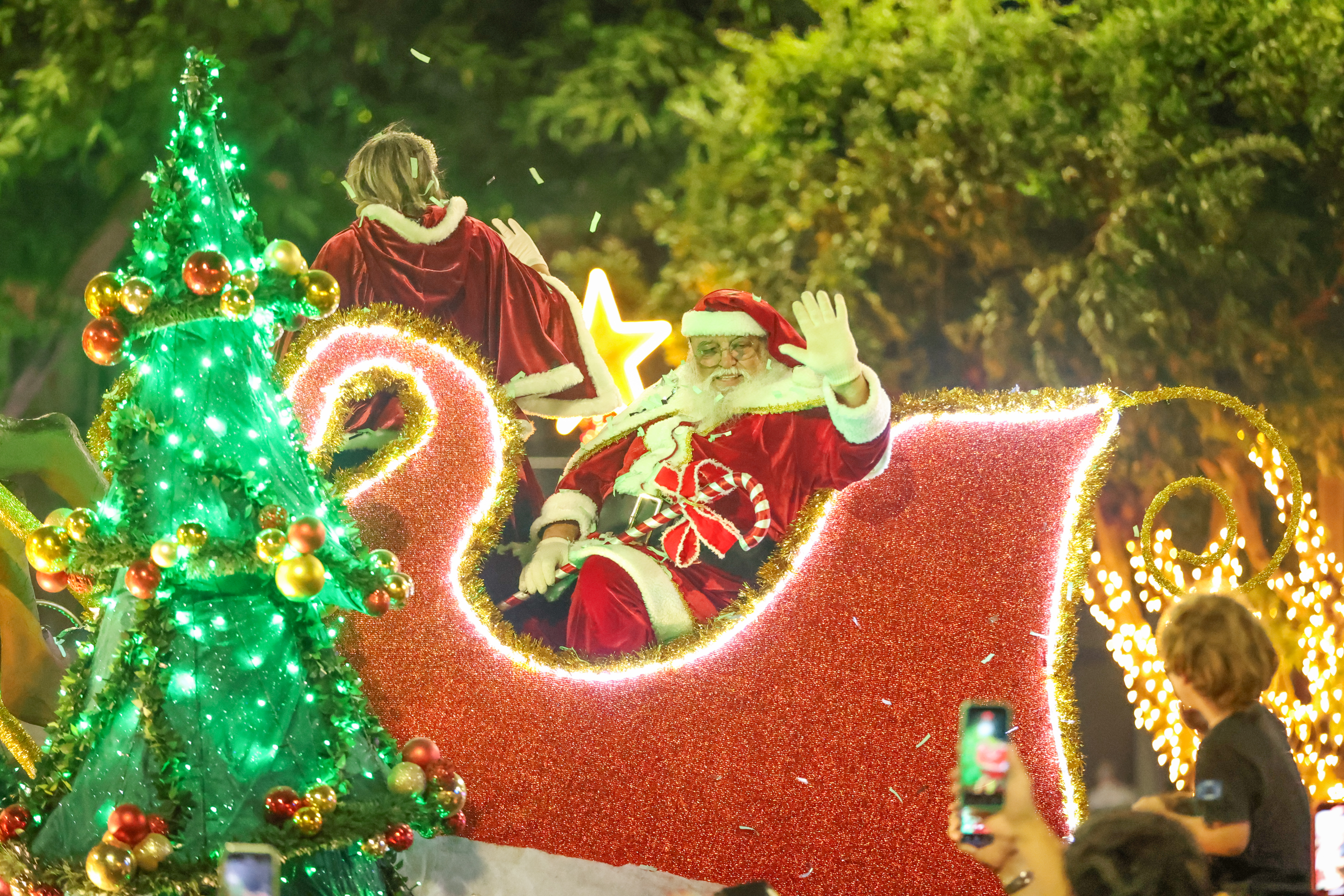 A magia do Natal tomou conta das ruas de Santarém na noite desta sexta-feira (12), com a realização da tradicional Parada de Natal, que reuniu uma multidão ao longo da Avenida Tapajós. O evento integra a programação oficial do Natal Iluminado, uma realização da Prefeitura de Santarém, por meio da Secretaria Municipal de Cultura (SEMC), com apoio das secretarias municipais de Trabalho e Assistência Social (Semtras), Educação (Semed), Mobilidade e Trânsito (SMT), Turismo (Semtur), Meio Ambiente (Semma), Saúde (Semsa), Urbanismo e Serviços Públicos (Semurb), Agricultura e Pesca (Semap), Portos e Transportes Aquaviários (Sempta) e Governo (Semg).