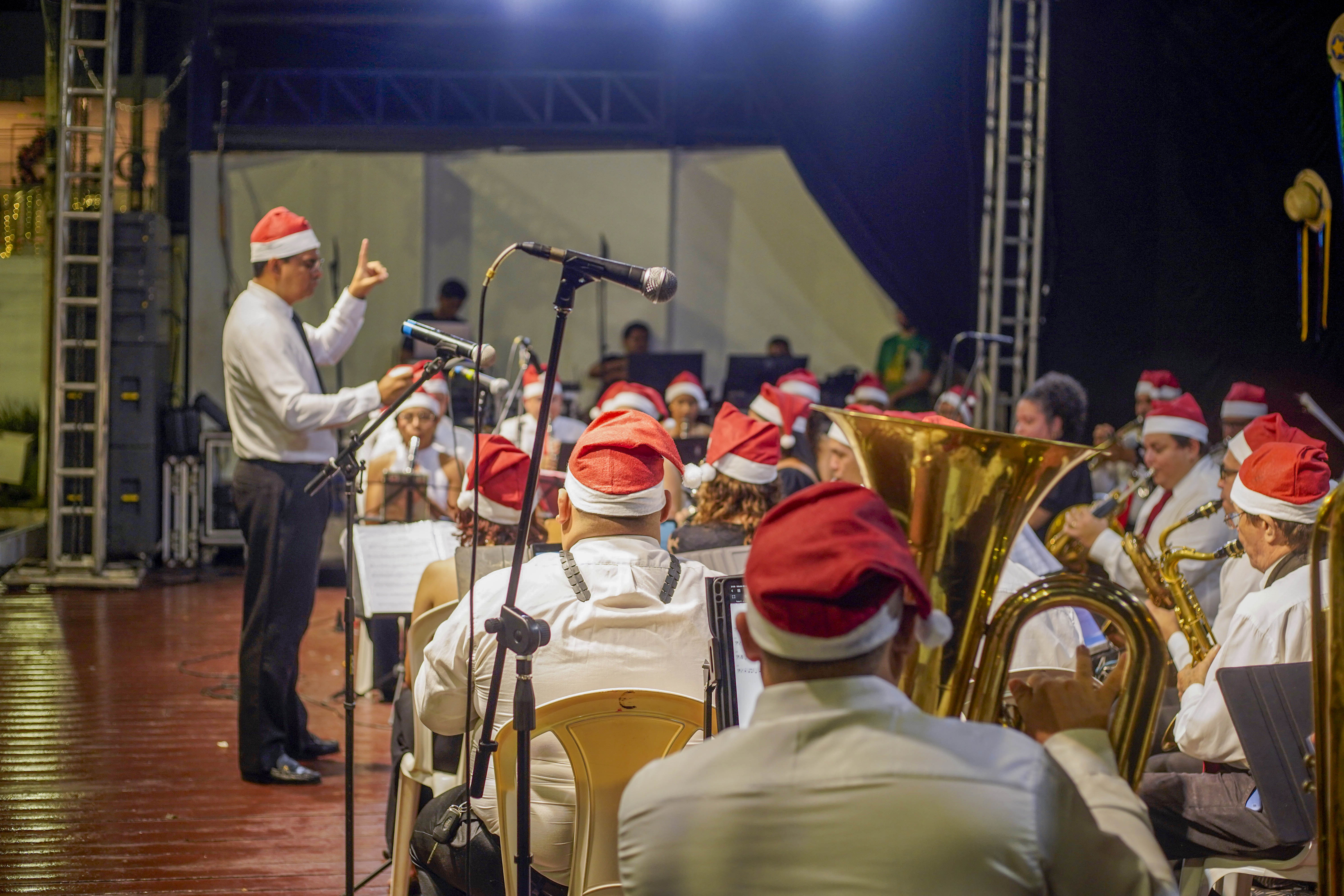 Na sequência, a Filarmônica Municipal Professor José Agostinho apresentou um repertório natalino com clássicos tradicionais, emocionando o público e criando um clima de união entre os presentes. A apresentação destacou a relevância da música instrumental para a formação cultural do município e valorizou o trabalho dos músicos locais, encerrando a noite sob aplausos.