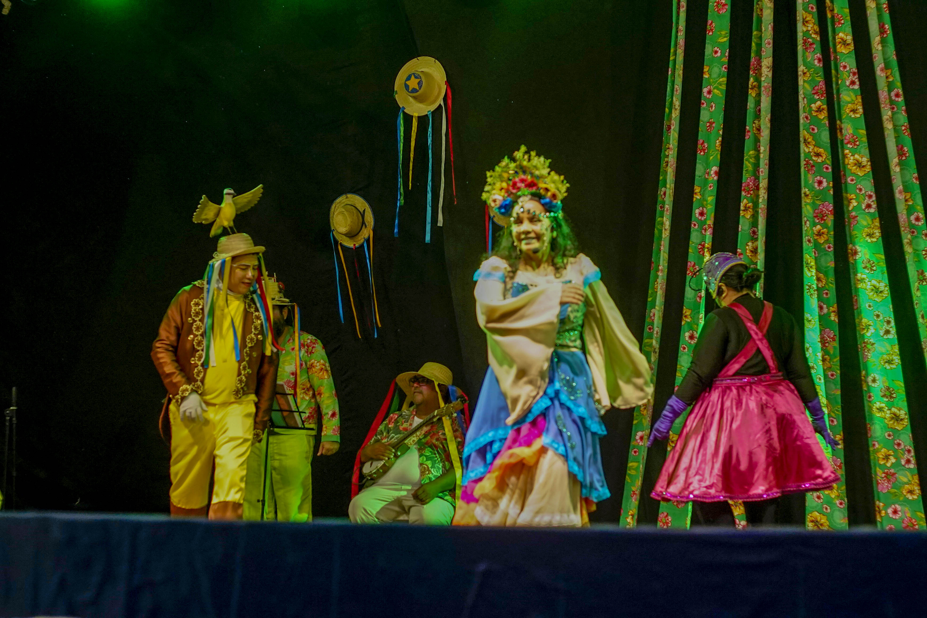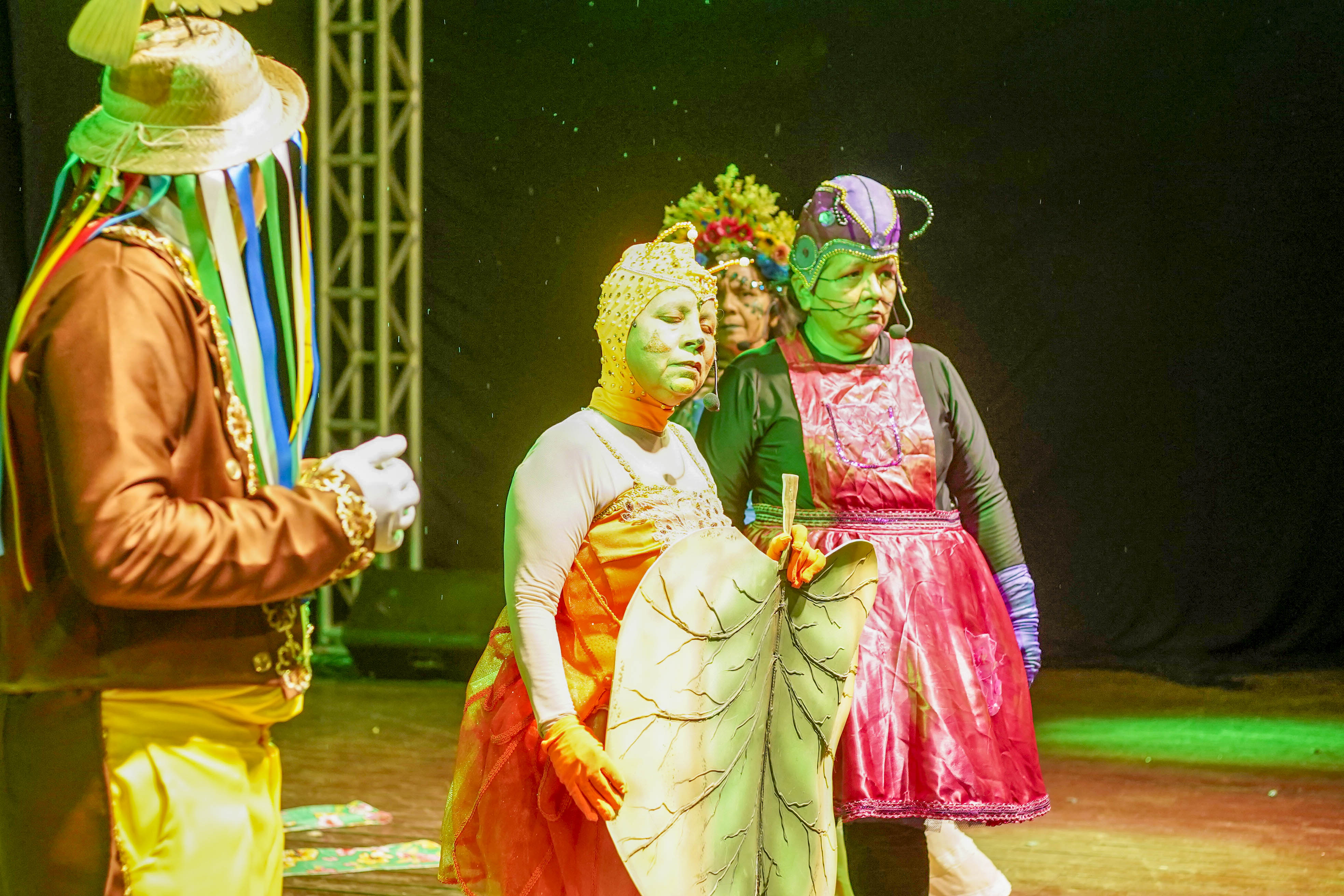 A abertura da noite ficou por conta da peça “A Cigarra e a Formiga na Flona”, uma adaptação amazônica da clássica fábula infantil, ambientada na Floresta Nacional do Tapajós (Flona). Com texto de Francisco Vera Paz, o espetáculo uniu teatro, música e símbolos regionais, despertando o interesse do público, especialmente das crianças.