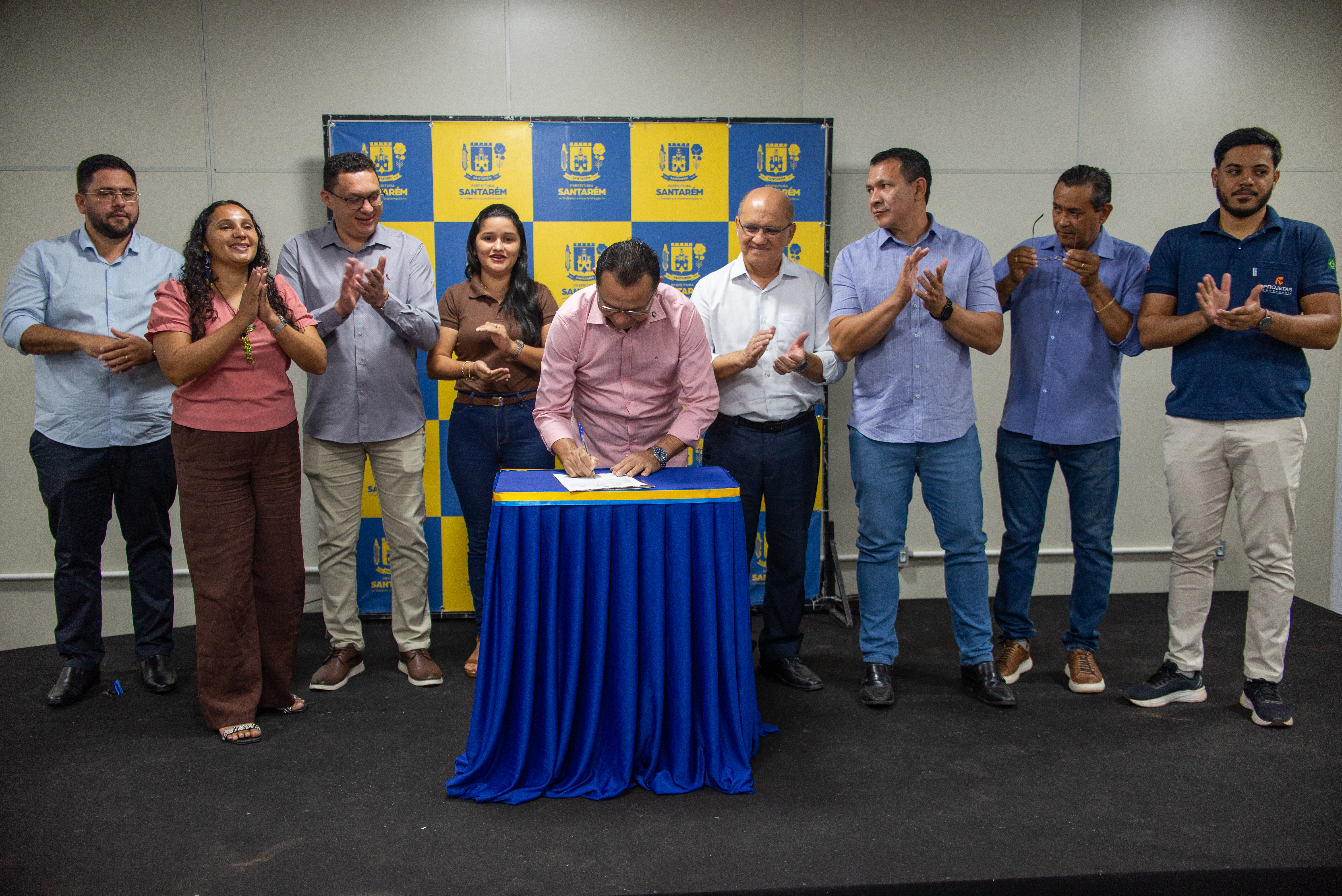 Na manhã desta quinta-feira (9), o auditório da Secretaria Municipal de Educação (Semed) foi palco de um importante passo para o fortalecimento da educação pública. Na oportunidade, 24 Ordens de Serviço foram assinadas pelo prefeito de Santarém, José Maria Tapajós, para obras de construção, reforma e ampliação em escolas e quadras poliesportivas das regiões urbana, de Planalto, do Tapajós, do Lago Grande, do Arapiuns e da Várzea.