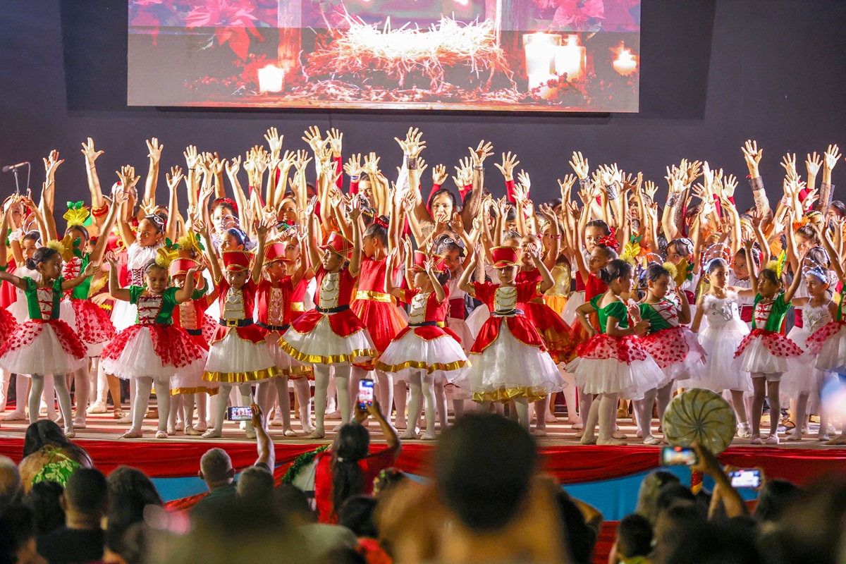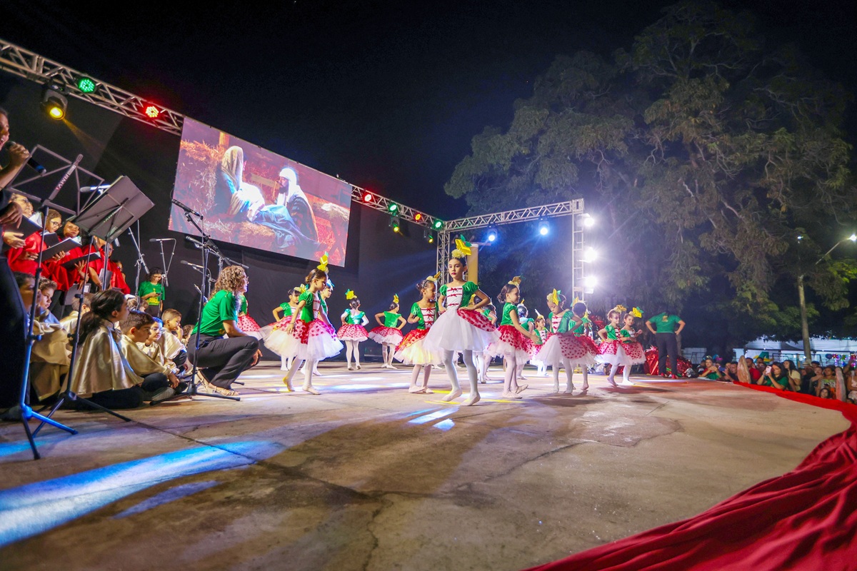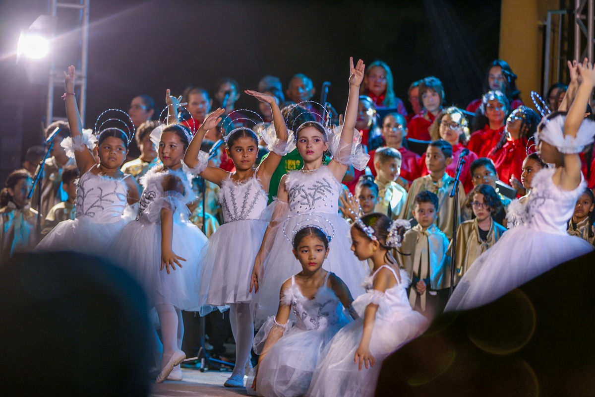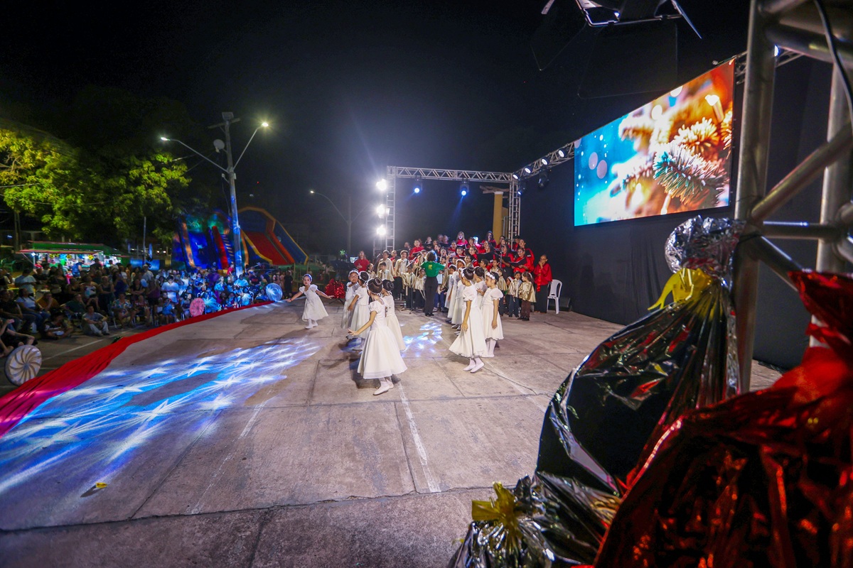 A noite de domingo (14) ganhou o colorido do Natal e reuniu centenas de pessoas na Praça Barão de Santarém. No palco do anfiteatro Joaquim Toscano as crianças e adolescentes da Escola de Artes Emir Hermes Bemerguy apresentaram o espetáculo 'Emanuel, Deus Conosco'. Doze apresentações foram preparadas e ensaiadas pelas turmas reunindo música, teatro e dança.