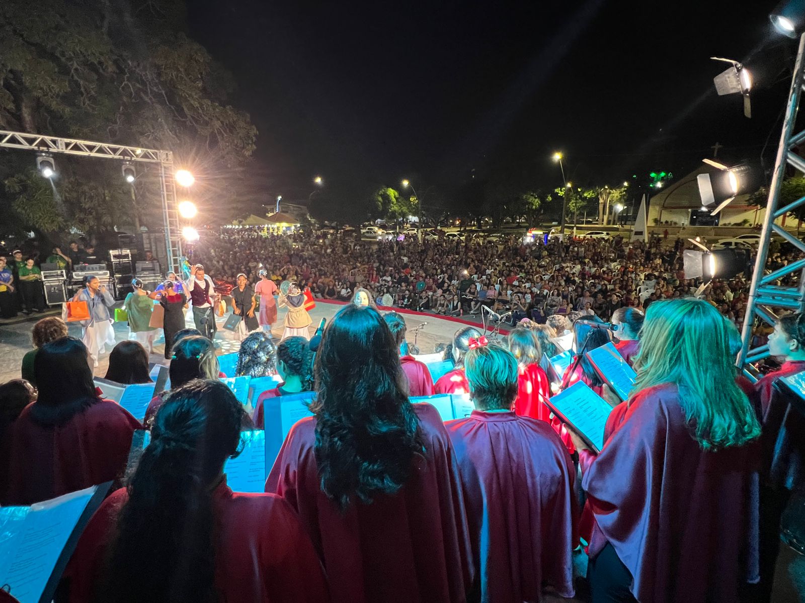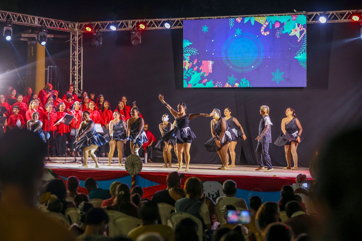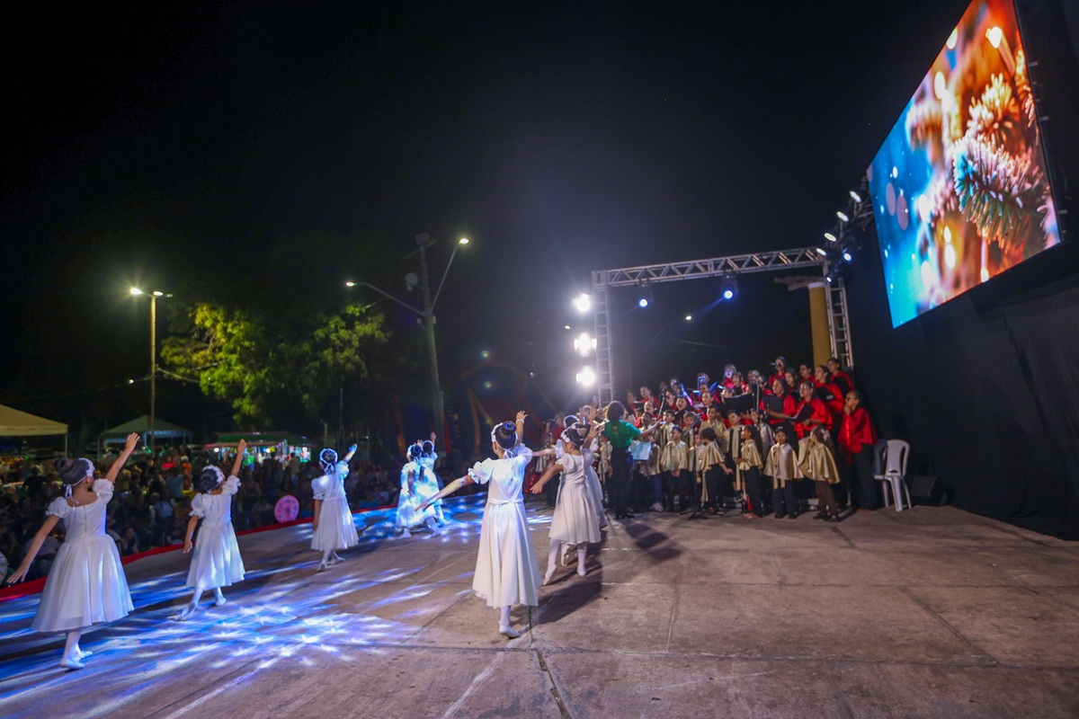 A noite de domingo (14) ganhou o colorido do Natal e reuniu centenas de pessoas na Praça Barão de Santarém. No palco do anfiteatro Joaquim Toscano as crianças e adolescentes da Escola de Artes Emir Hermes Bemerguy apresentaram o espetáculo 'Emanuel, Deus Conosco'. Doze apresentações foram preparadas e ensaiadas pelas turmas reunindo música, teatro e dança.