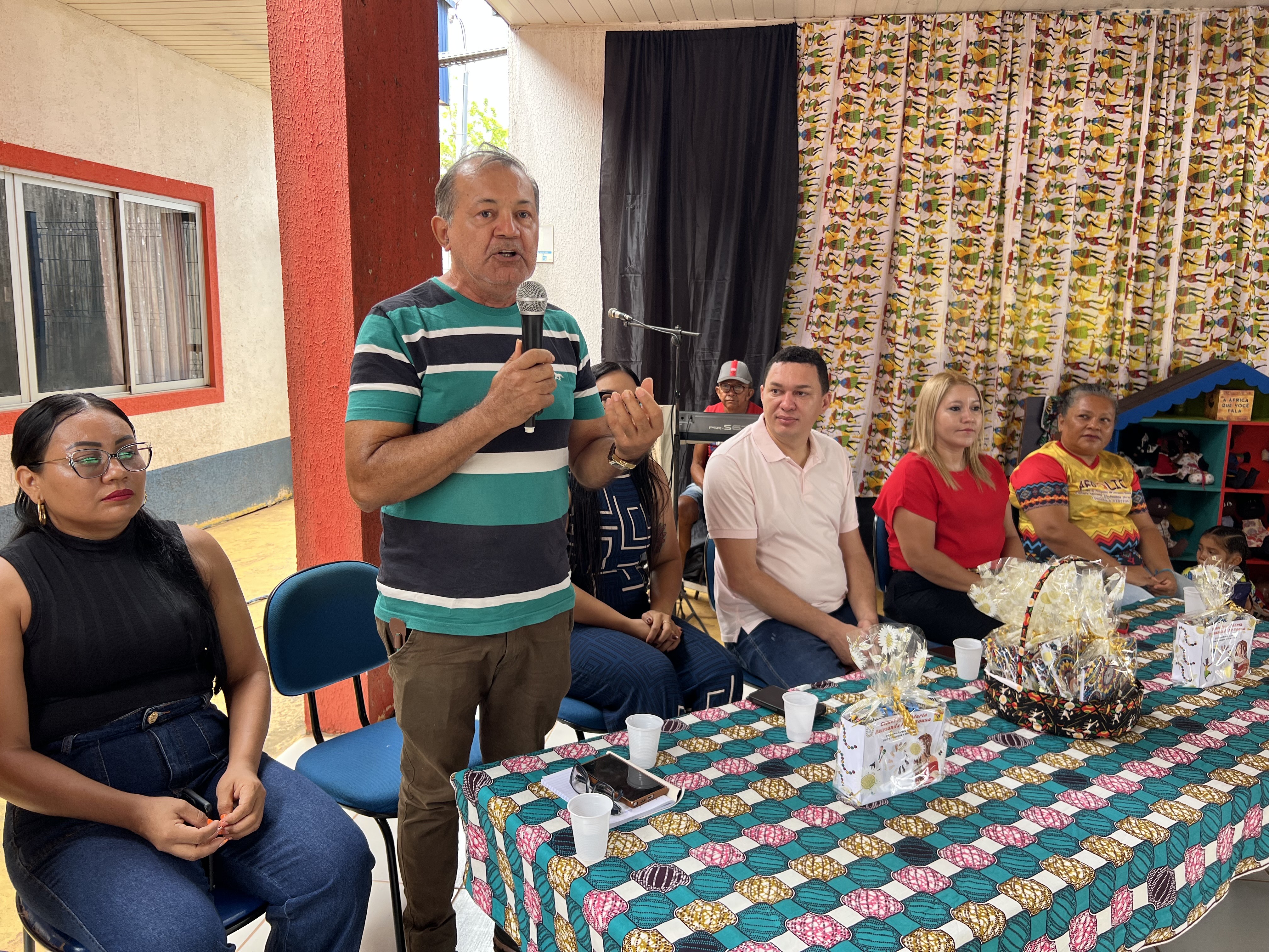 Wiliams Valentim, representante da UNB, está em Santarém desenvolvendo a pesquisa “Educando para o Antirracismo”, coordenada pela Professora Ana Tereza em convênio com o MEC. Ele parabenizou o Cemei pelo momento que classificou como criativo, lúdico e eterno.
