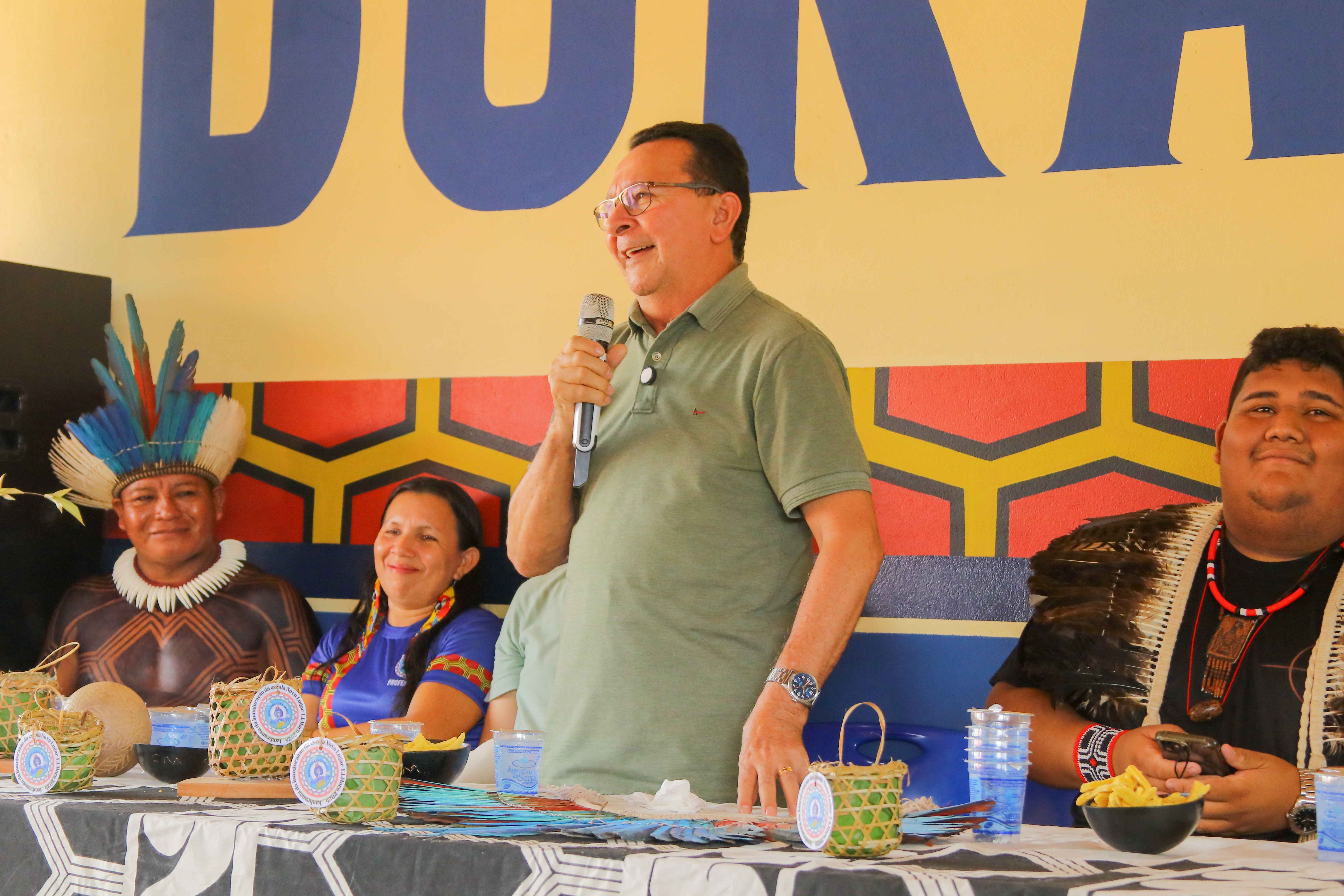 “Hoje, aqui, nesse momento importante e histórico pra nossa aldeia, que recebe depois de 30 anos, o tão sonhado prédio escolar, quero me comprometer, aqui, em público, com a educação das crianças. Diariamente, nós, indígenas, enfrentamos desafios, mas nós não paramos de lutar. Essa escola é fruto da nossa luta coletiva”, enfatizou.