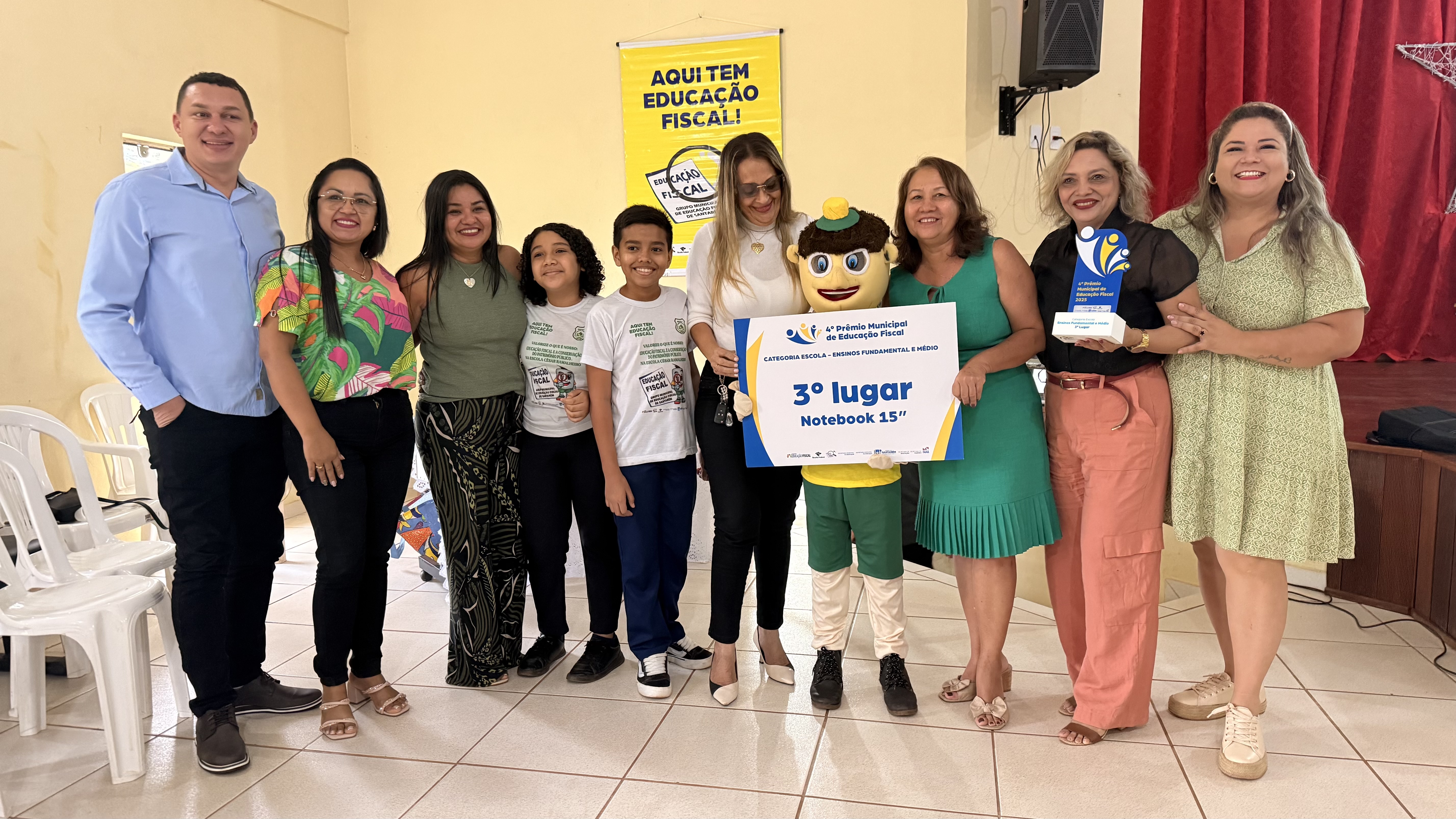 Entre os finalistas da categoria Ensino Fundamental e Médio, o 3º lugar foi conquistado pela EMEF César Simões Ramalheiro, com o projeto “Valorize o que é Nosso: Educação Fiscal e a Conservação do Patrimônio Público na Escola”, coordenado pela professora Risonete Uchoa. A iniciativa incentiva o cuidado com o patrimônio escolar e ganhou força com a criação do mascote Zé Notinha, que se tornou símbolo da prática cidadã na comunidade escolar.