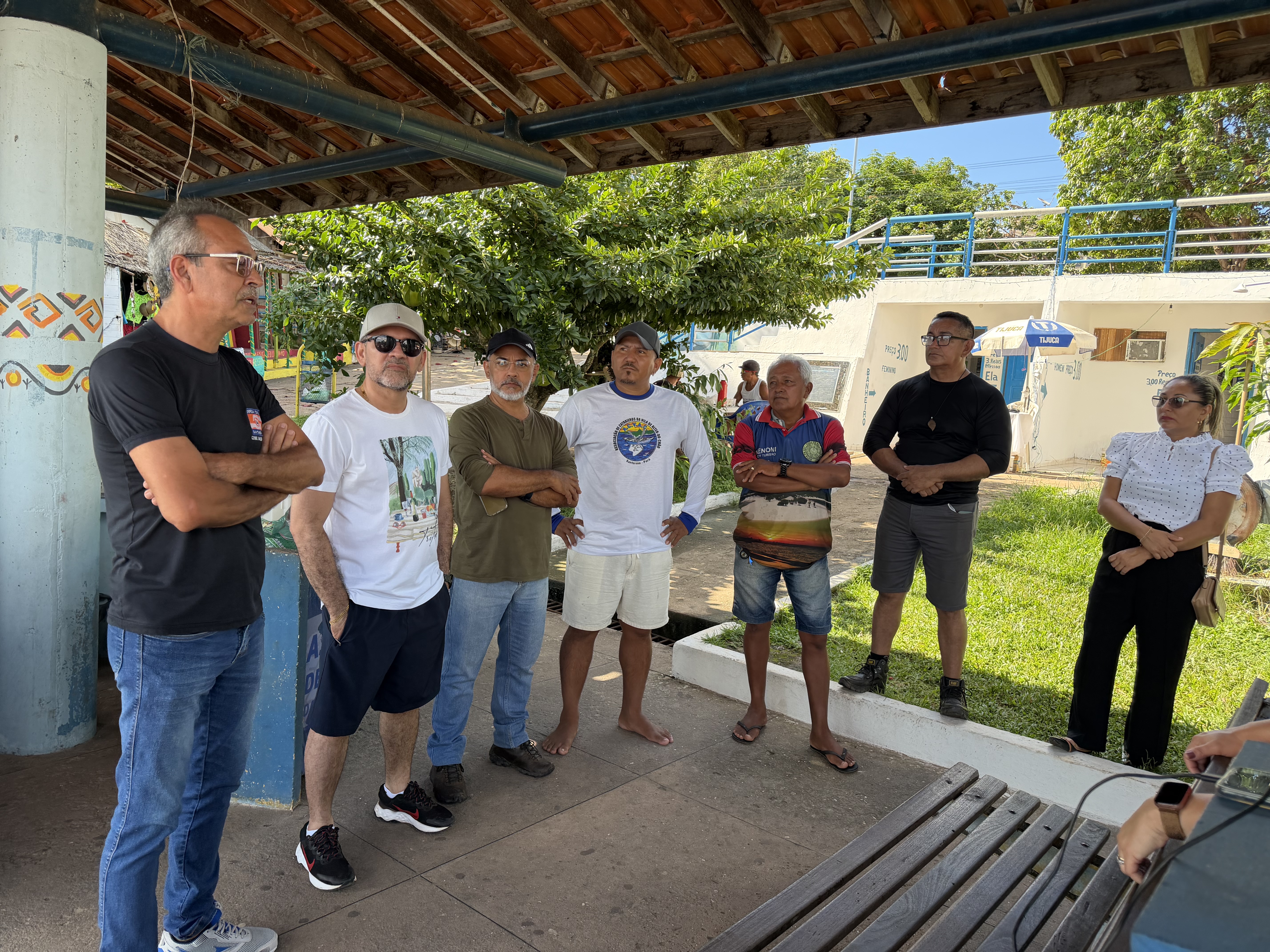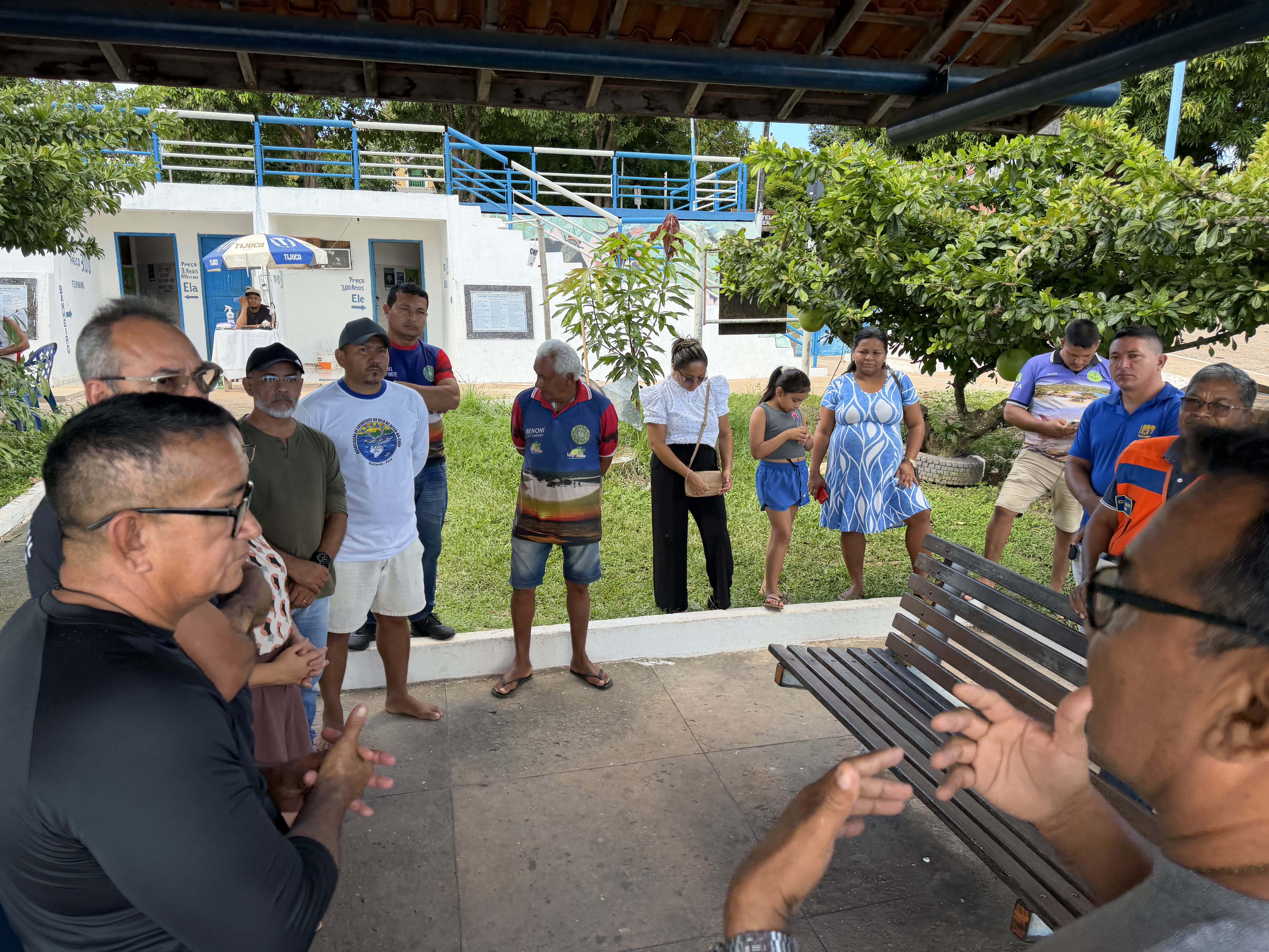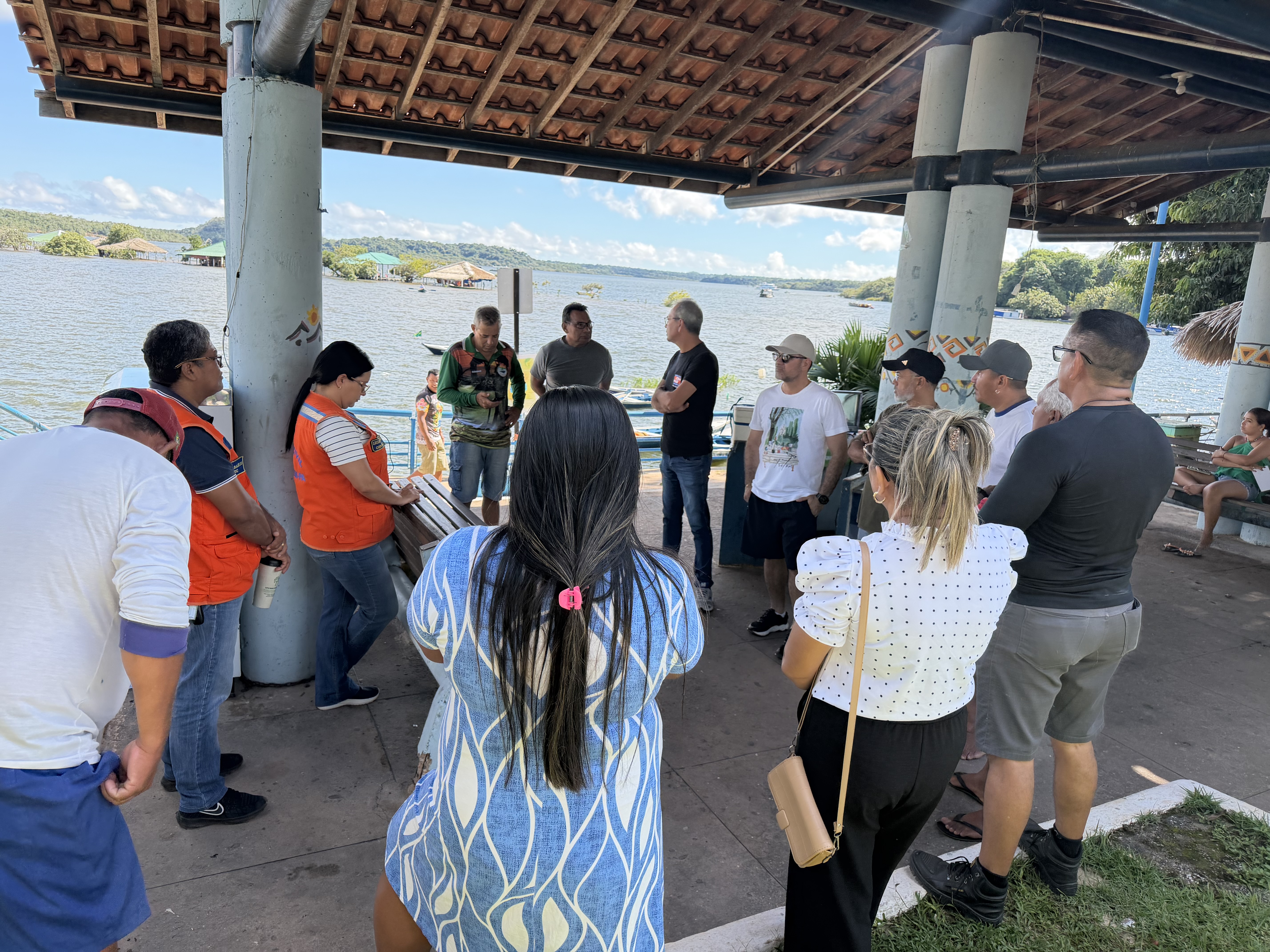 O encontro aconteceu na orla da vila, na área de acesso às catraias, reunindo trabalhadores do transporte fluvial e do setor turístico, diretamente impactados pelas chuvas intensas.