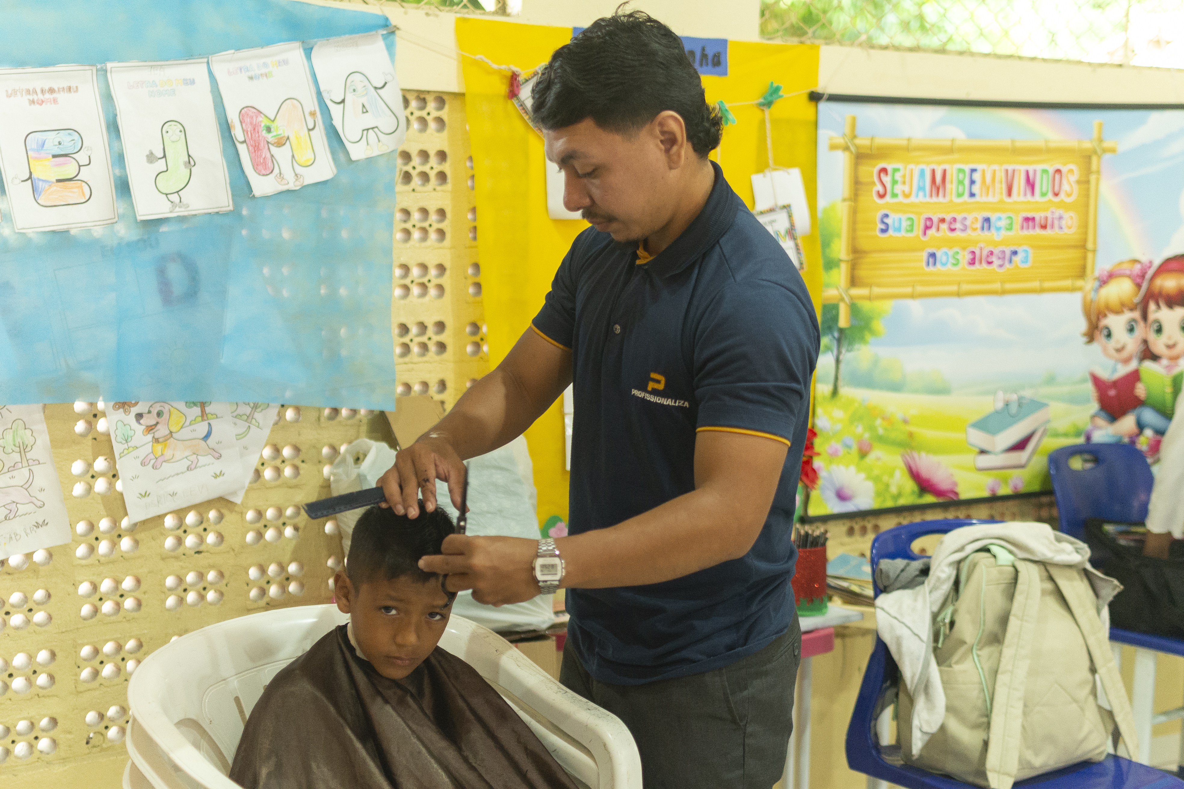 Com profissionais qualificados, o Instituto Profissionaliza levou serviços na área de beleza, como cortes de cabelo, design de sobrancelhas e massagens relaxantes.