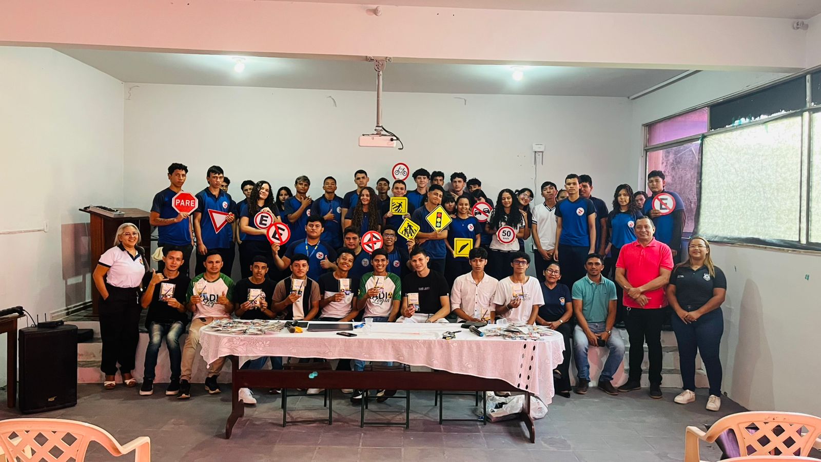 A Prefeitura de Santarém, por meio da Secretaria Municipal de Mobilidade e Trânsito (SMT), em parceria com o curso de Radiologia da Universidade da Amazônia (UNAMA), realizou nesta segunda-feira (03) uma palestra educativa sobre segurança e comportamento responsável no trânsito. A ação ocorreu na Escola Estadual Onésima Pereira de Barros, no bairro Fátima, reunindo estudantes, professores e representantes das instituições promoventes.