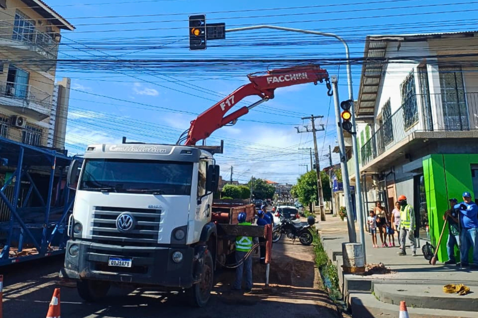 Outras intervenções incluem o alinhamento de focal na Avenida Tapajós com a Travessa Joaquim da Costa Pereira e a substituição do módulo de LED verde no cruzamento da Avenida Brasília com a Travessa Turiano Meira, garantindo melhor visibilidade e funcionamento adequado dos equipamentos.