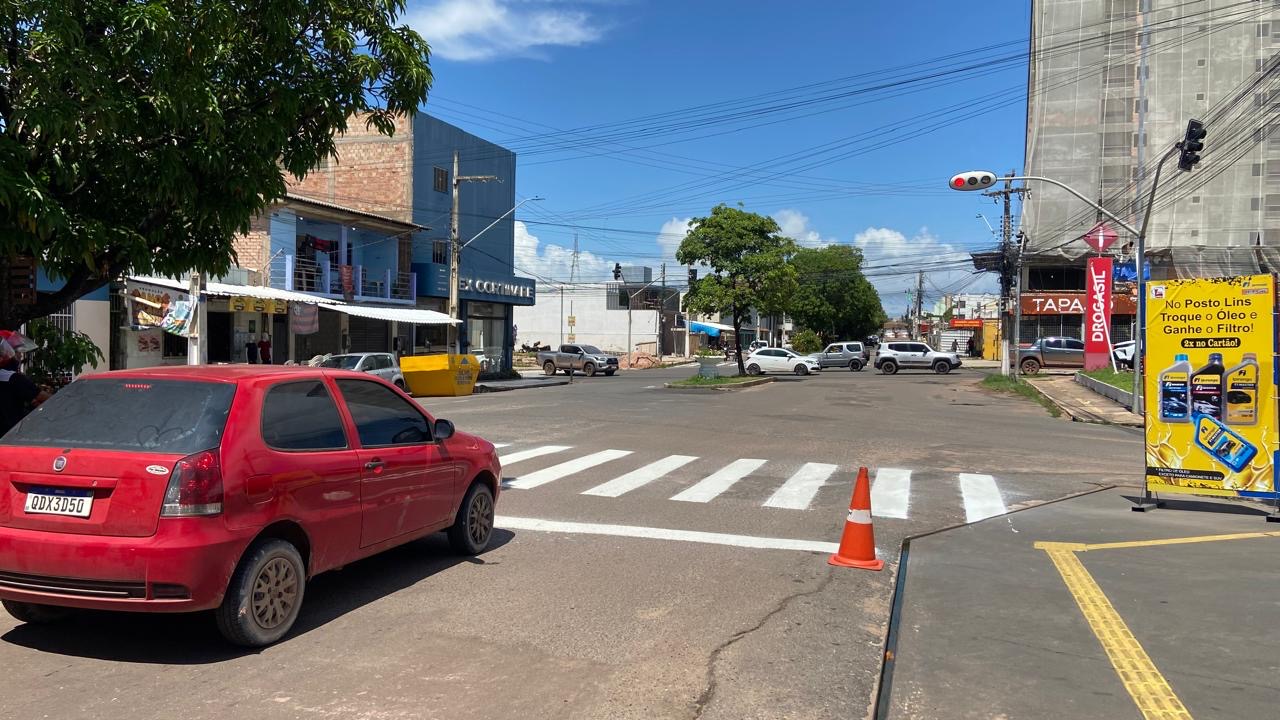 Além da instalação do novo semáforo, o cruzamento recebeu reforço na sinalização horizontal, com a pintura de faixas de travessia de pedestres e faixas de retenção, elementos fundamentais para organizar o espaço viário e garantir que cada usuário da via saiba exatamente onde deve parar, circular ou atravessar.