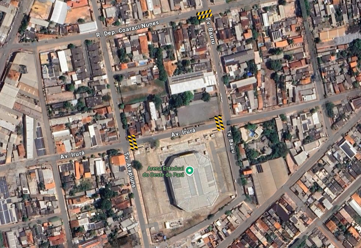 Já no entorno da Praça do Sairé, as interdições ocorrerão nos seguintes cruzamentos: