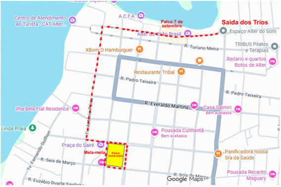 Na vila balneária de Alter do Chão, outro importante polo do Carnaval, a SMT também adotará interdições para organizar a circulação de veículos e pedestres. Na área da orla, entre a Praça Sete de Setembro e a Praça do Sairé, serão interditadas as seguintes vias:
