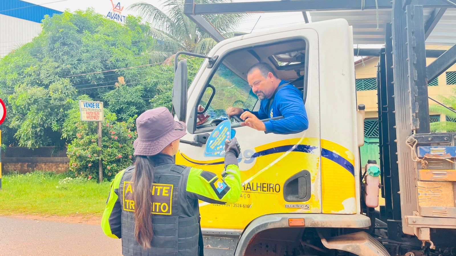 Além do diálogo direto com os motoristas, foram distribuídos materiais educativos, como ventarolas (abanadores) e panfletos com mensagens voltadas à segurança viária e à valorização da vida, estratégia que amplia o alcance da informação e fortalece a conscientização.