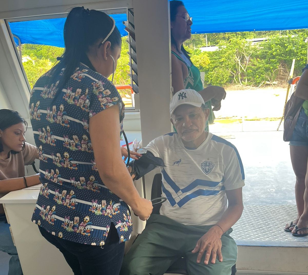 Os atendimentos não ocorrem apenas no interior da embarcação. As equipes de saúde também se deslocam em lanchas até comunidades e áreas onde o navio não consegue acessar, além de utilizarem espaços cedidos pelos próprios moradores, como barracões e estruturas de apoio local, ampliando o alcance da assistência.