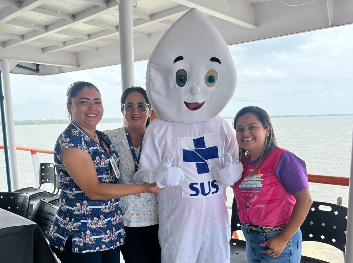 Além dos atendimentos clínicos e preventivos, a expedição também aposta em ações educativas e simbólicas para fortalecer a vacinação. Um dos destaques é a presença do Zé Gotinha, personagem símbolo das campanhas de imunização no Brasil, que acompanha a equipe em lanchas até comunidades mais distantes, levando informação, incentivo à prevenção e, principalmente, vacinas.