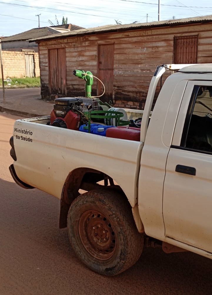 Para a realização da ação estão sendo utilizados o equipamento Termonebulizador Veicular de propriedade do Estado (uma máquina pesada de ultra baixo volume) tipo LECO e quatro pulverizadores costais. A aplicação ocorre em dois horários diários, das 6h às 8h da manhã e das 18h às 20h.