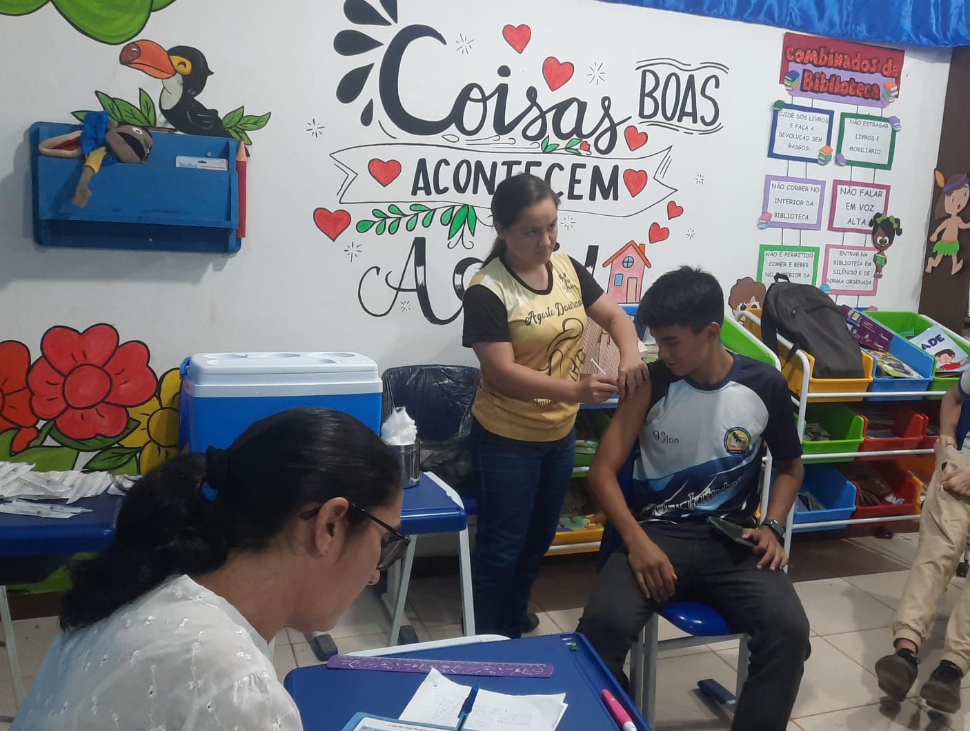 Nesta quarta-feira (29), profissionais da Unidade Básica de Saúde (UBS) Jutaí/Urumari estiveram na Escola Municipal João Batista Mileo, no bairro Urumari, realizando atualização da caderneta de vacinação e avaliação antropométrica dos estudantes.