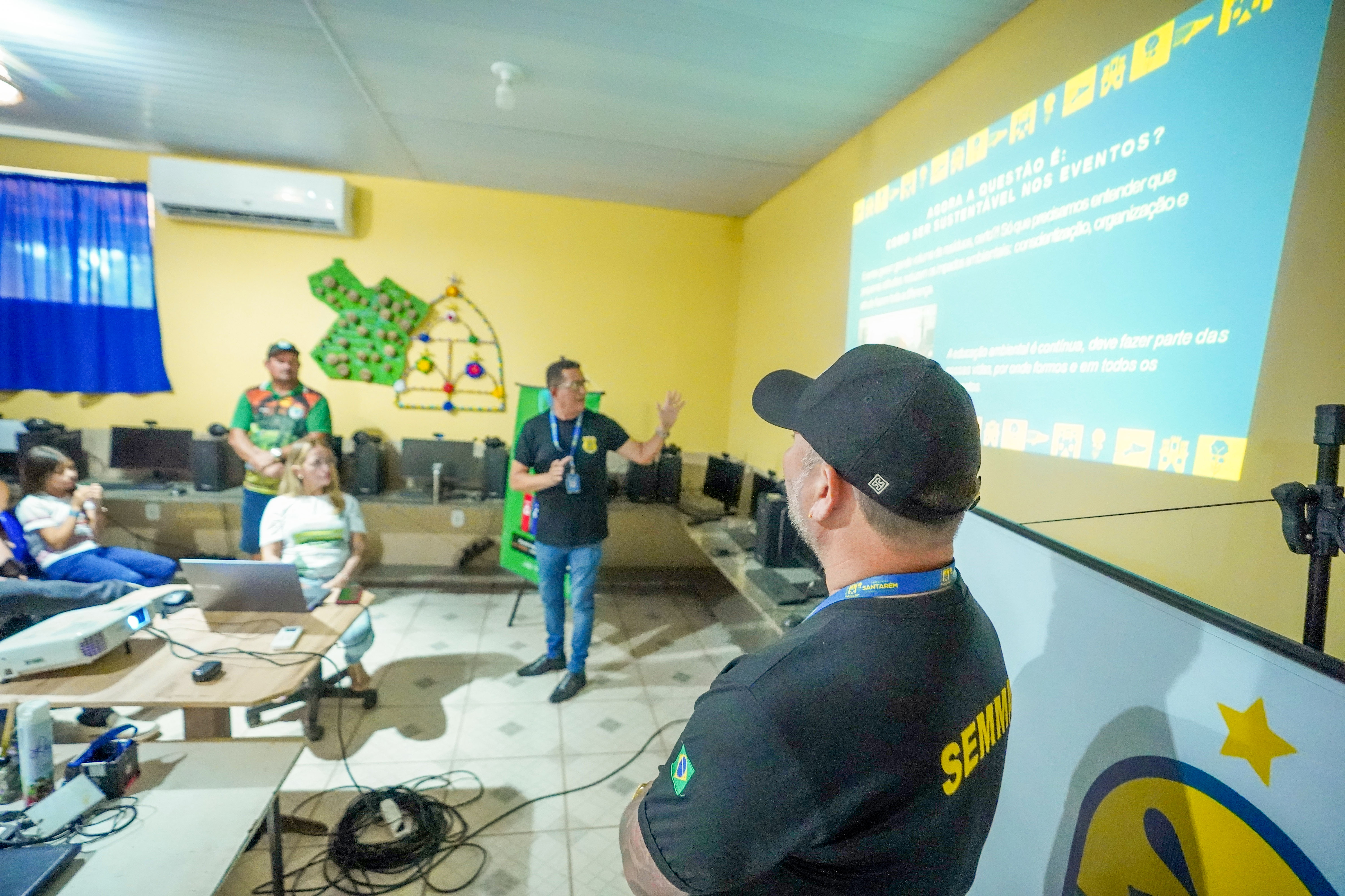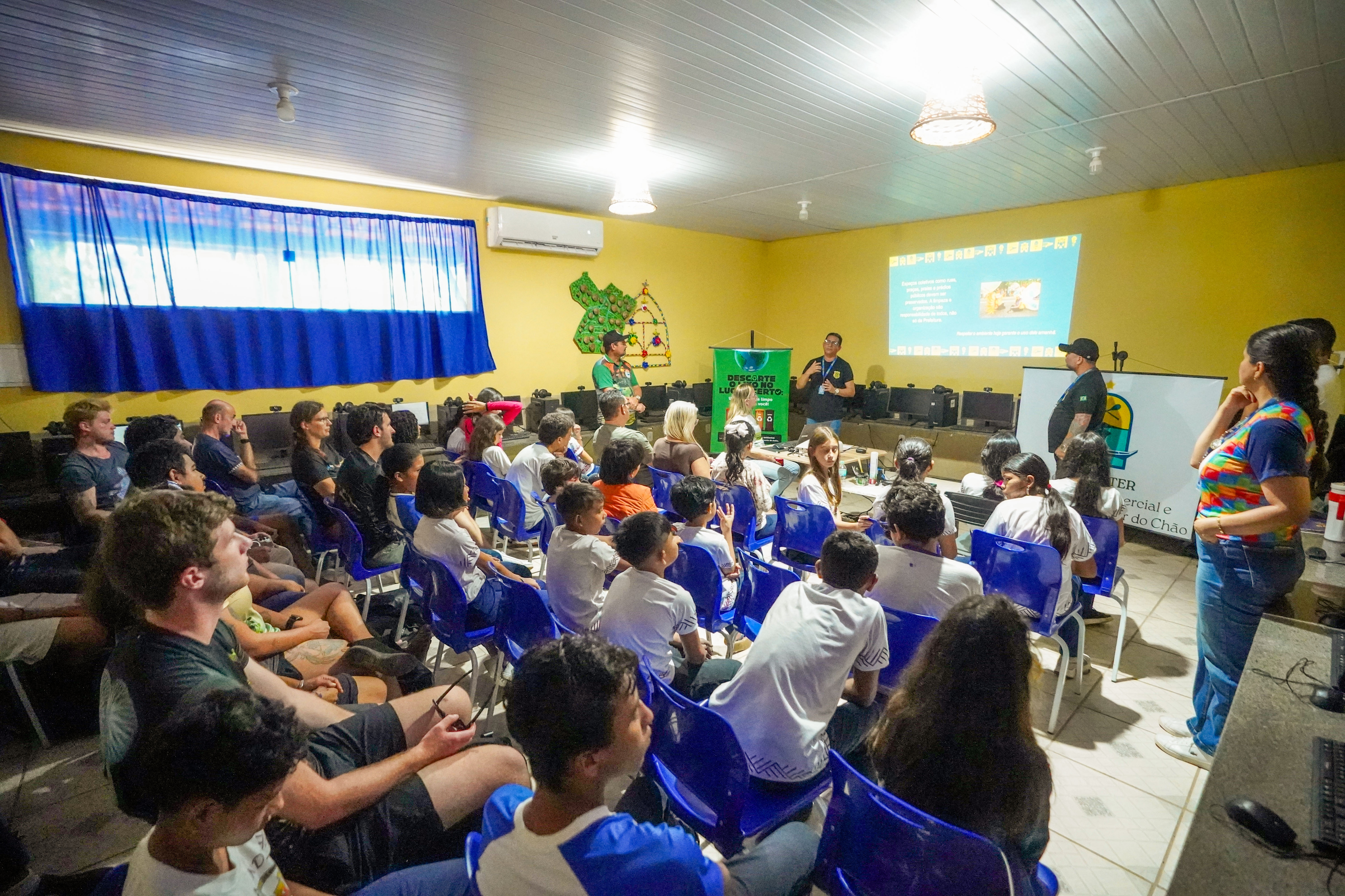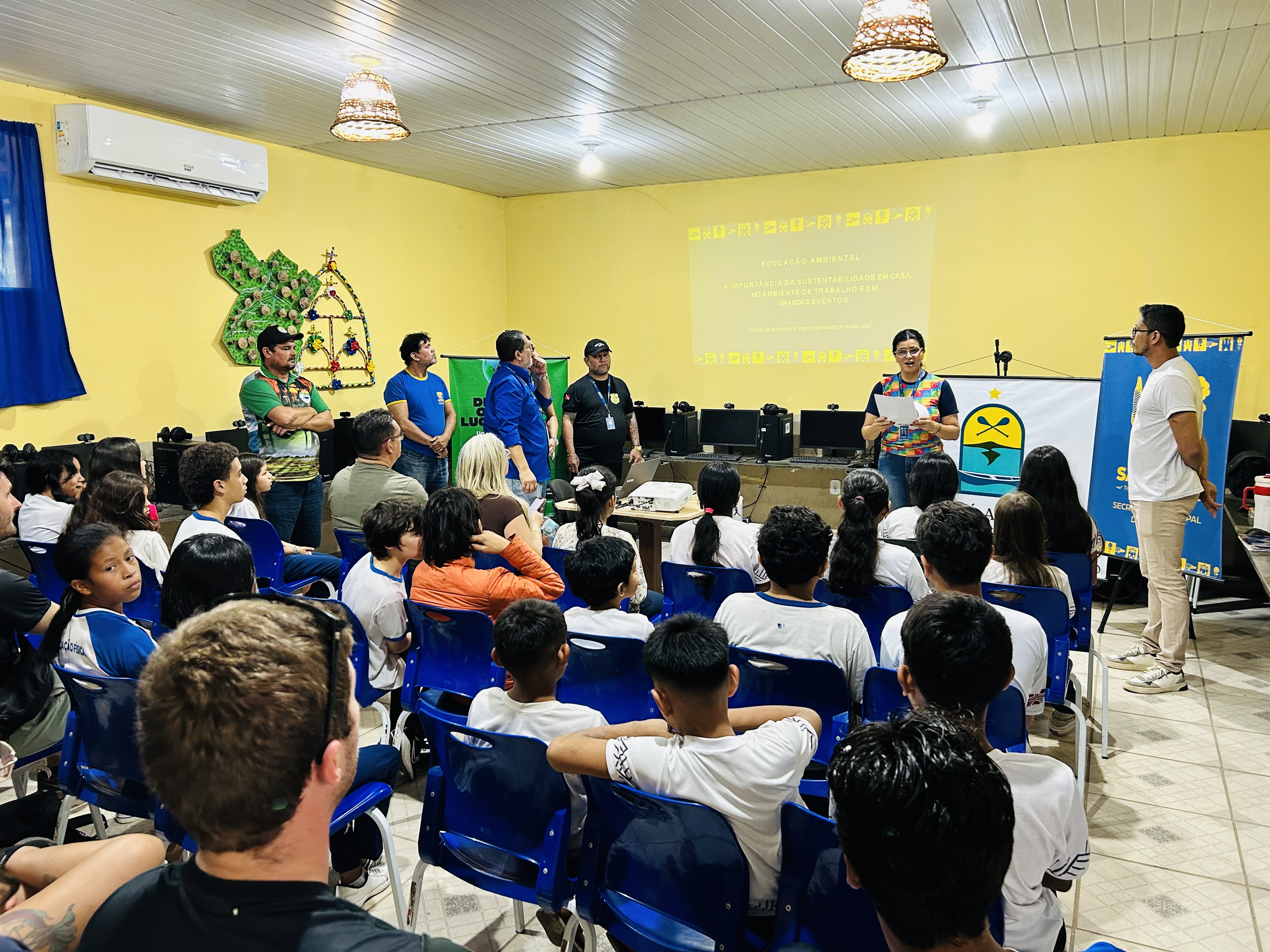 Na Escola Municipal Indígena Borari, estudantes participaram de uma palestra sobre educação ambiental e gestão de resíduos sólidos, conduzida por equipes da Semma/CIAM e Semurb, reforçando a importância da formação ambiental desde a infância.