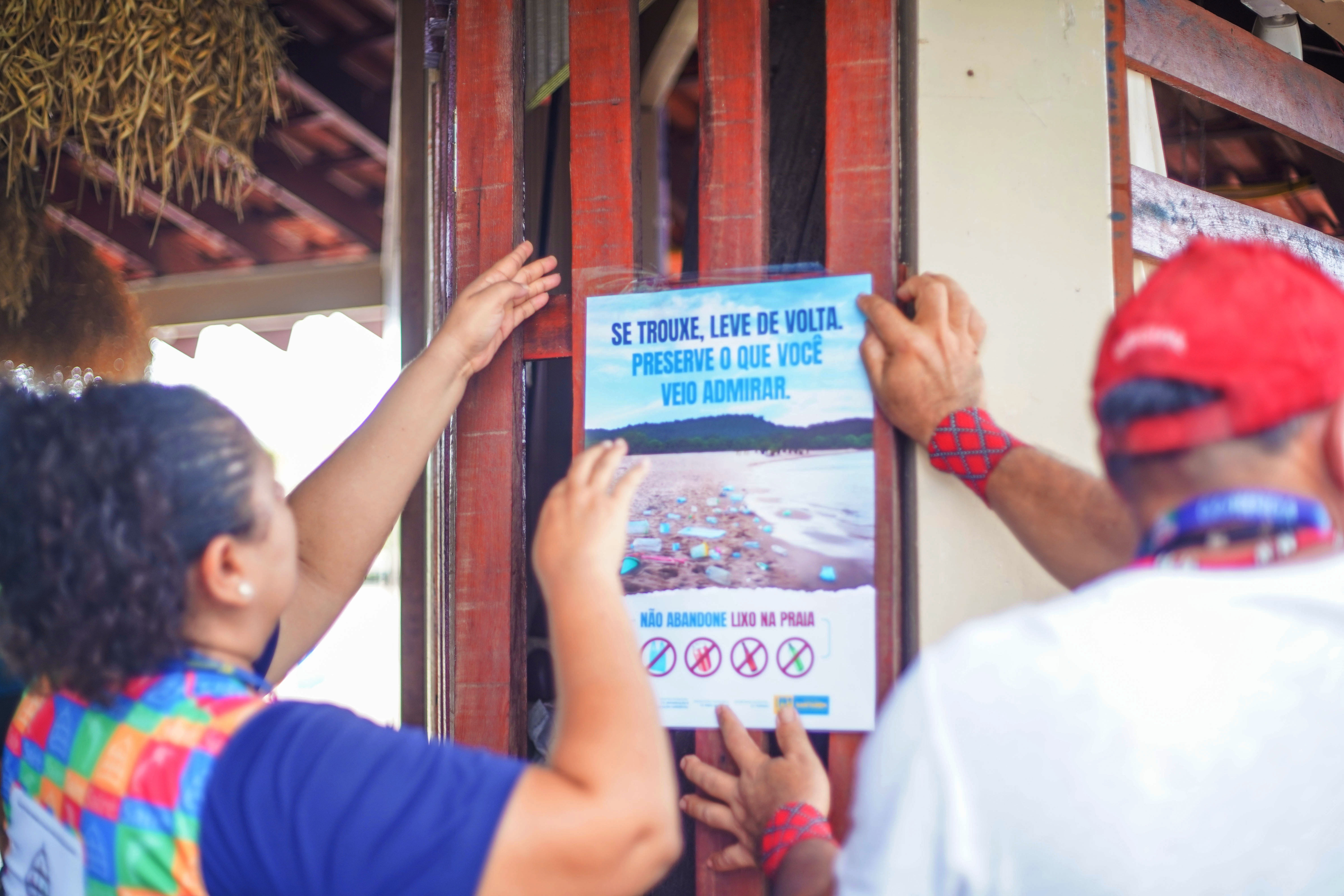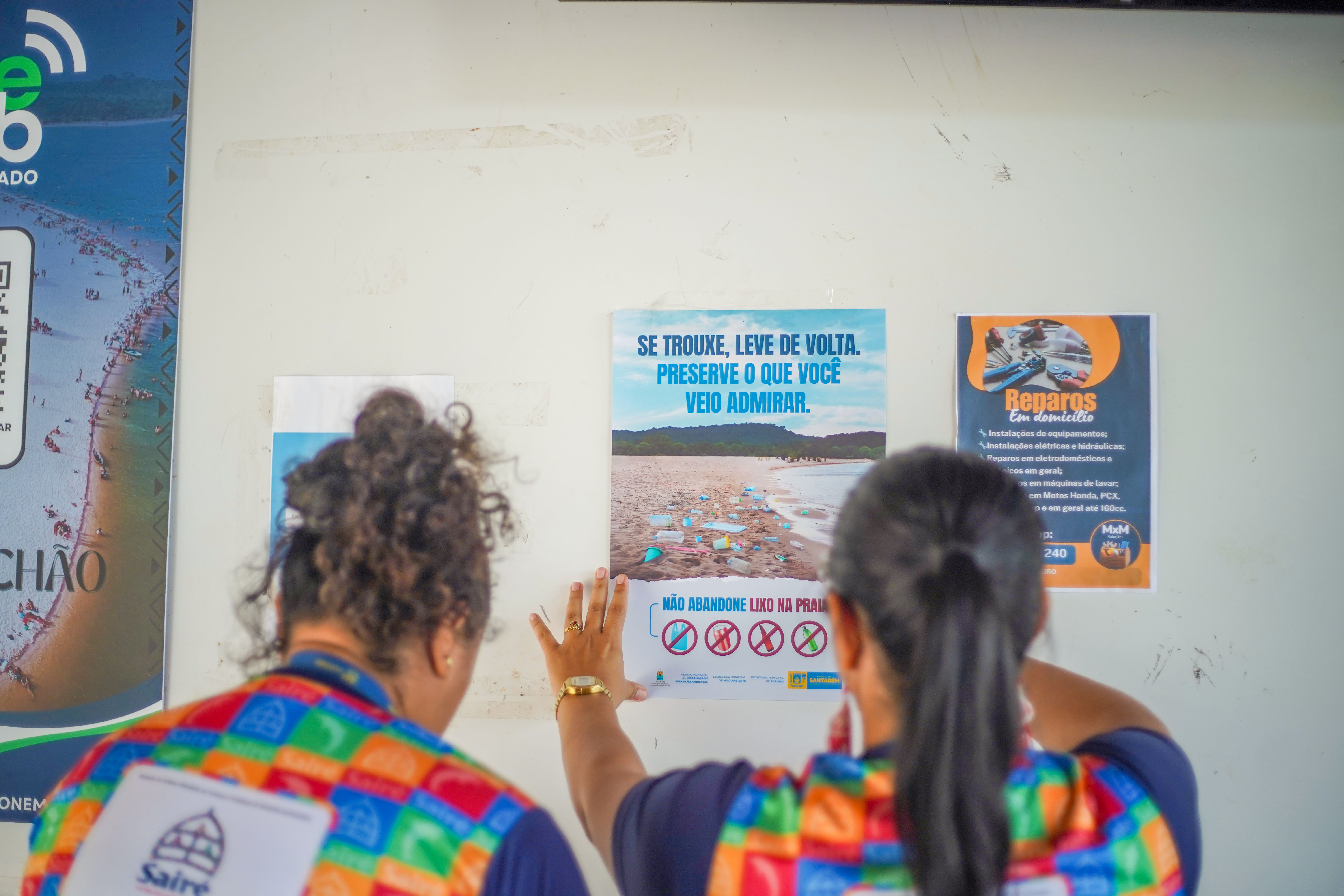 Durante a manhã, também foram afixados cartazes educativos em ônibus que fazem a linha para Alter do Chão e em pontos estratégicos da vila, com o objetivo de reforçar a conscientização sobre preservação ambiental e descarte correto de resíduos.